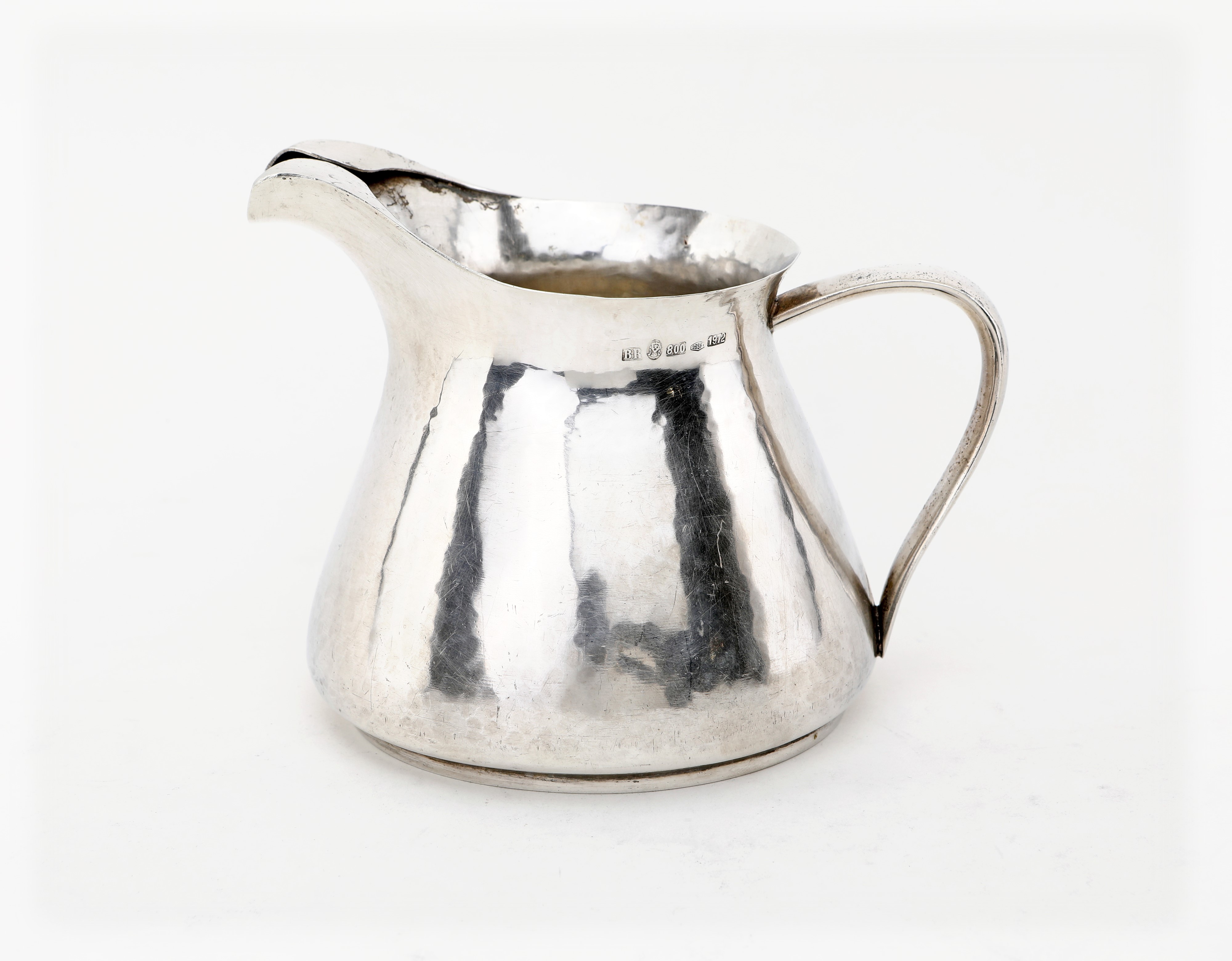 di forma tronco conica con versatoio caratterizzato da lembi ripiegati, manico sagomato