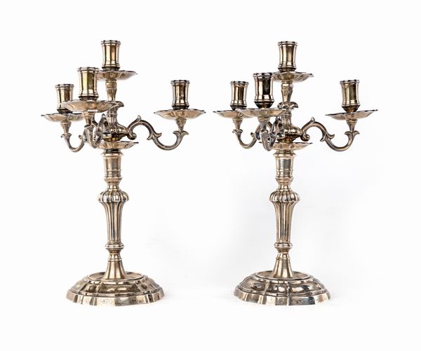 Coppia di candelabri in argento a doppio uso, Milano, bollo del Fascio