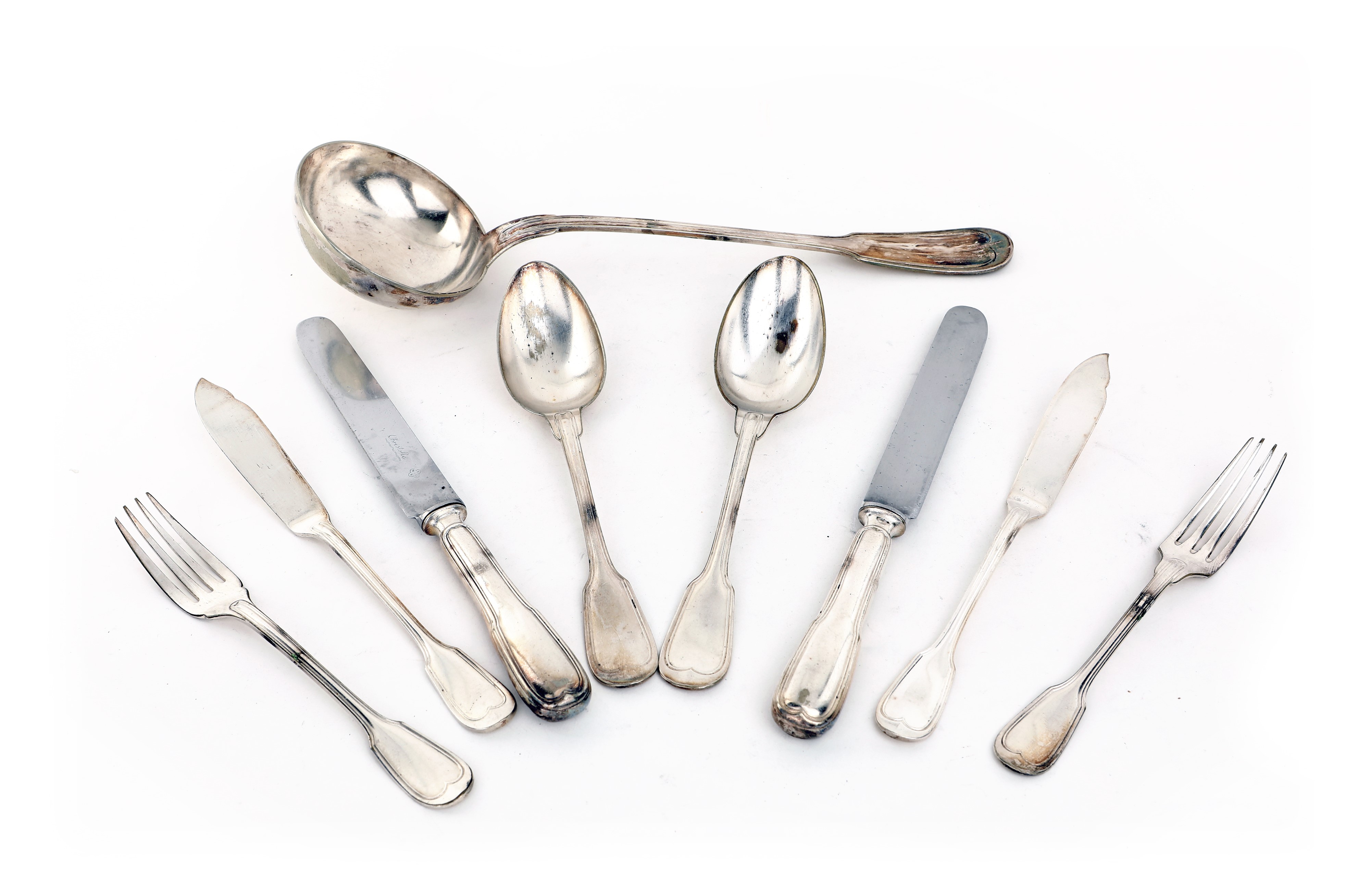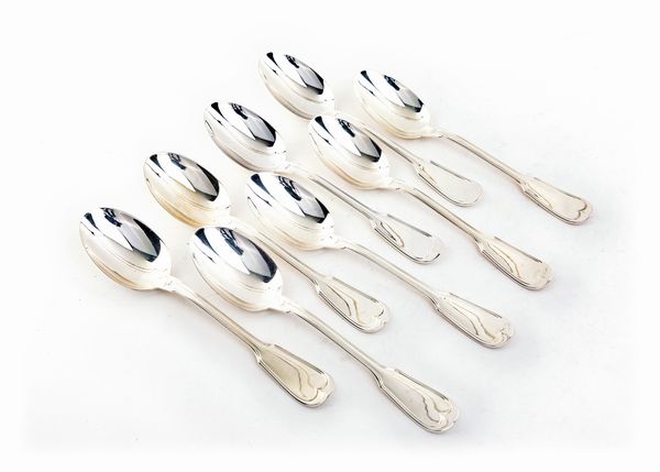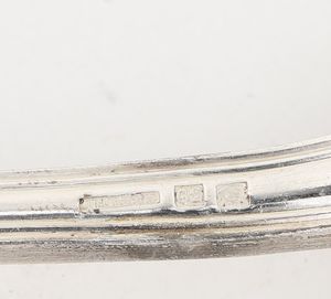 cm 16,7 - gr. 326 uniti ad un servizio di posate Christofle dalle analoghe caratteristiche, composto da due cucchiai da minestra, cinque coltelli da pasto, quattro coltelli e due forchette da frutta, sei coltelli da pesce, quattro forchette da dolce e un ramaiolo