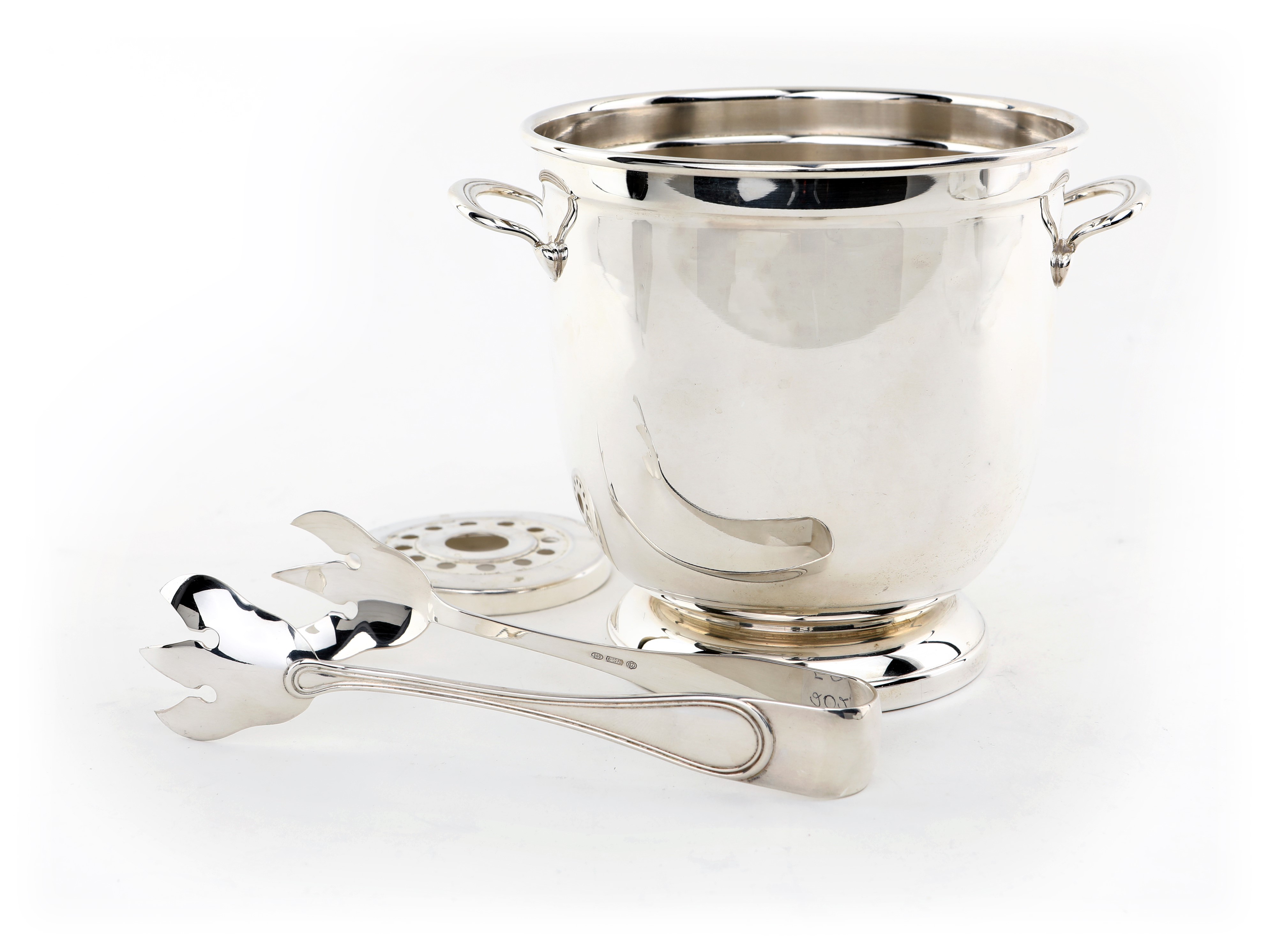 Secchiello portaghiaccio, argentiere Greggio e pinza