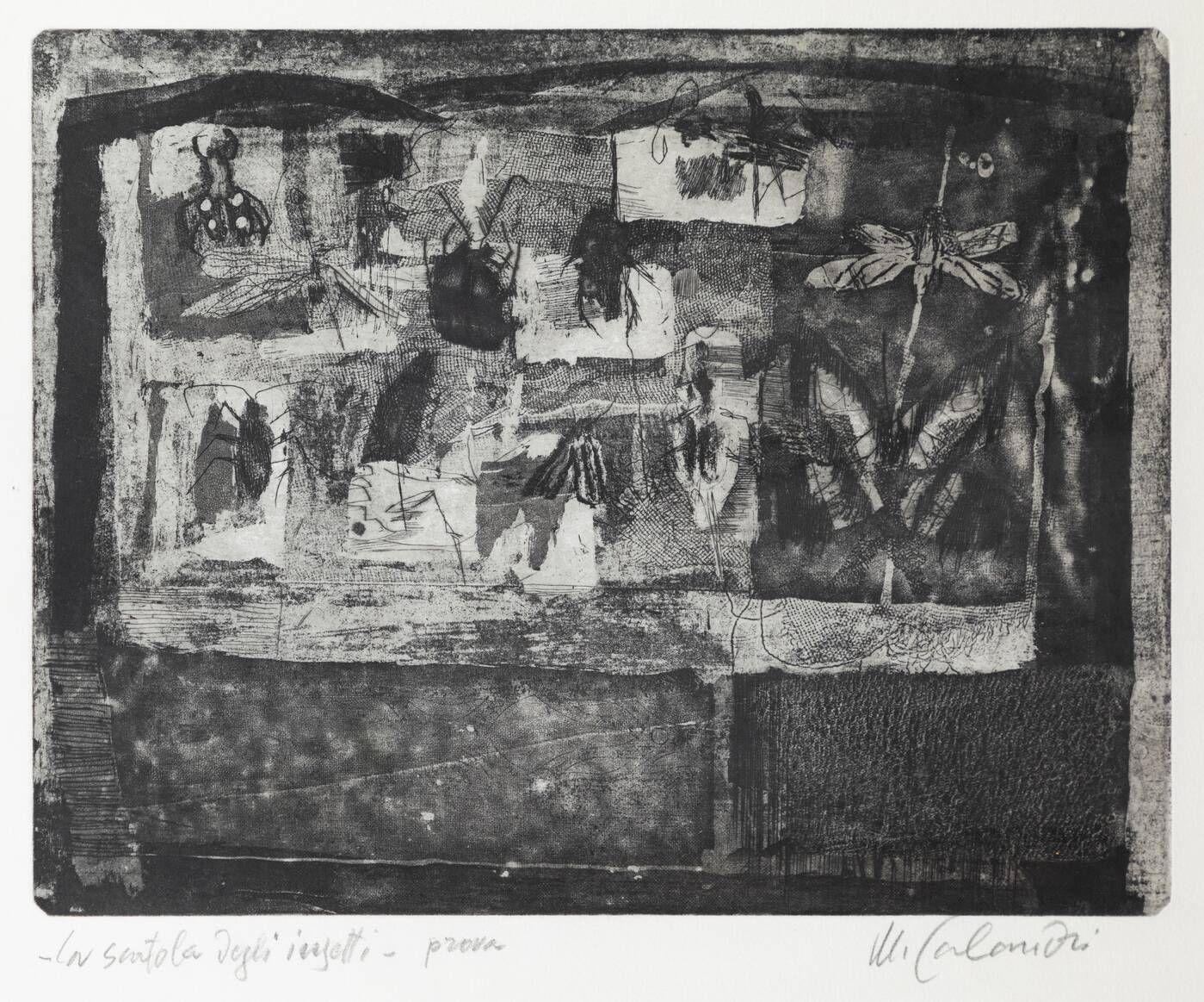 37x49 foglio 23x30 acquaforte p.a (tiratura di 30 esemplari firmati e contrassegnati con numeri arabi e alcune prove) Opera firmata in basso a destra intitolata e numerata in basso a sinistra (a matita sul foglio) Bibl.:- Maurizio Fagiolo dell'Arco Franco Fanelli e Vincenzo Gatti Catalogo generale delle opere di Calandri - Le incisioni - 1937/1991 Allemandi Torino 1996 n. 160 pag. 162
