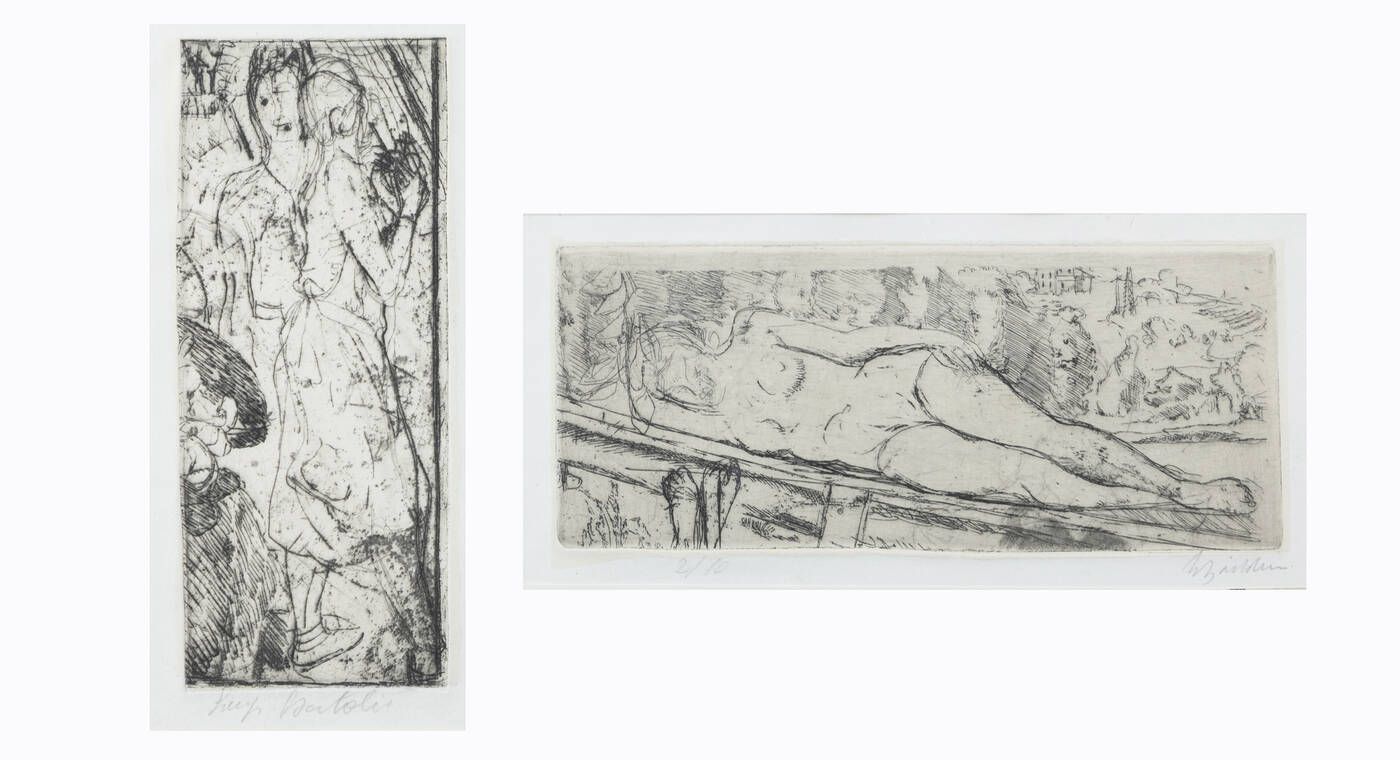 Lotto di due incisioni A - Due figure femminili B - Nuda distesa