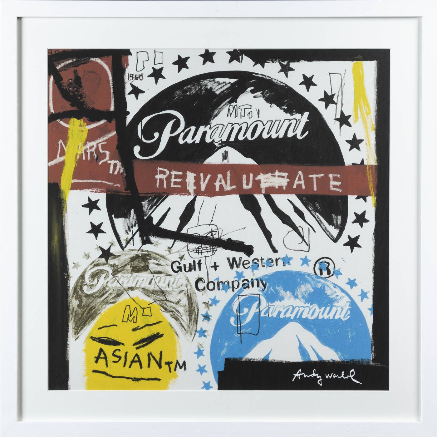 60x60 serigrafia a colori es. 99/2400 Opera firmata in lastra in basso a destra e numerata in basso a sinistra (a matita nera su fondo nero) Per Jean-Michel Basquiat Al retro timbro CMOA