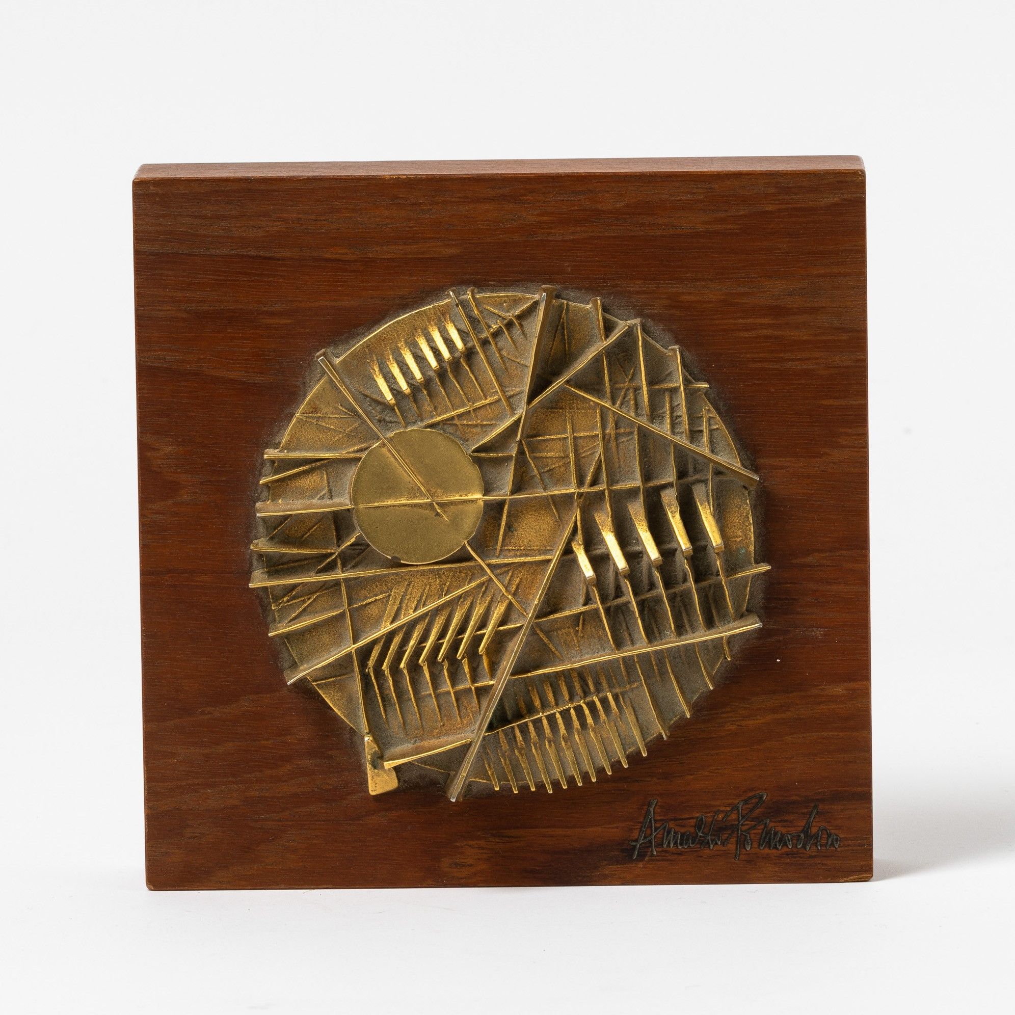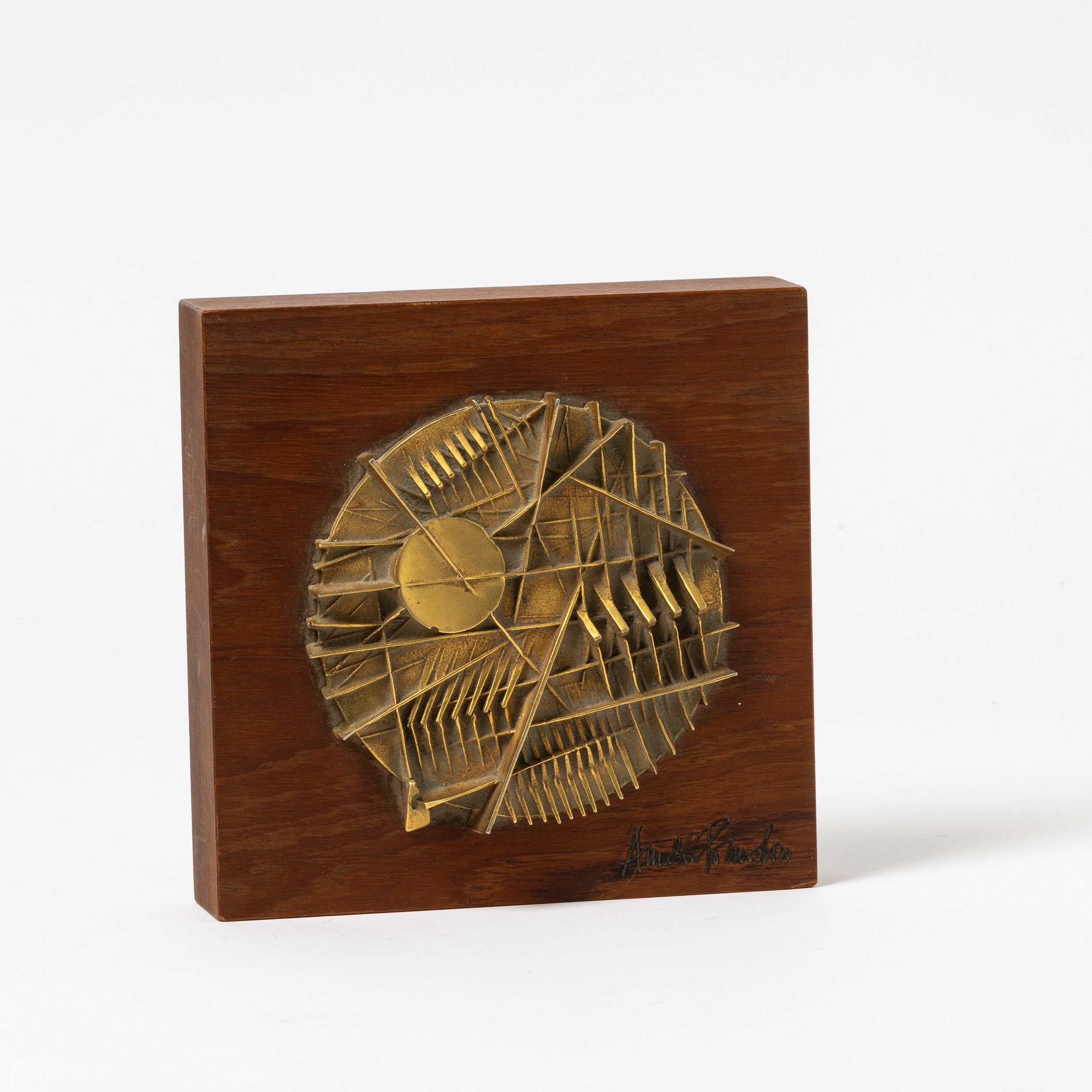 multiplo in bronzo dorato su supporto in legno, Largh. 18 - Prof. 3,5 - Alt. 18 Cm