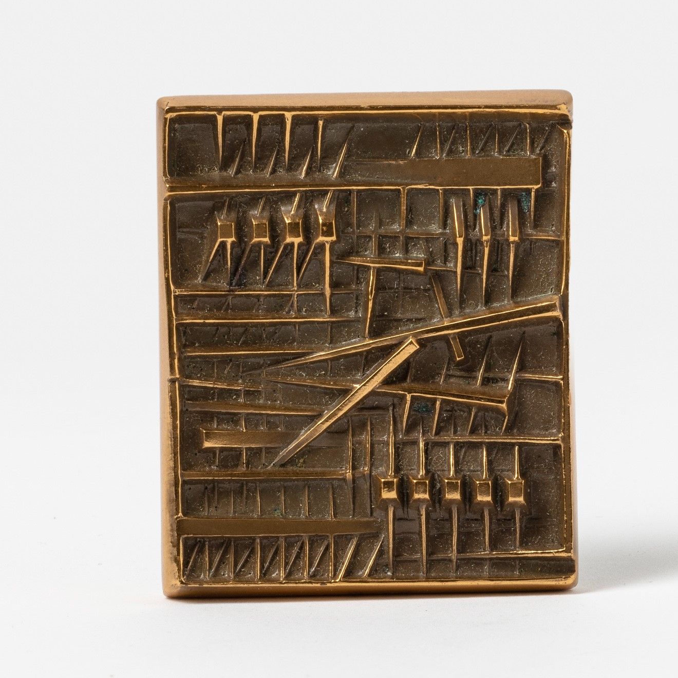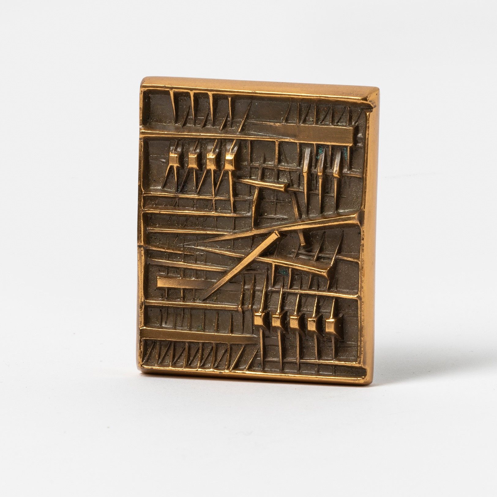 placca in bronzo dorato, Largh. 5 - Alt. 6 Cm