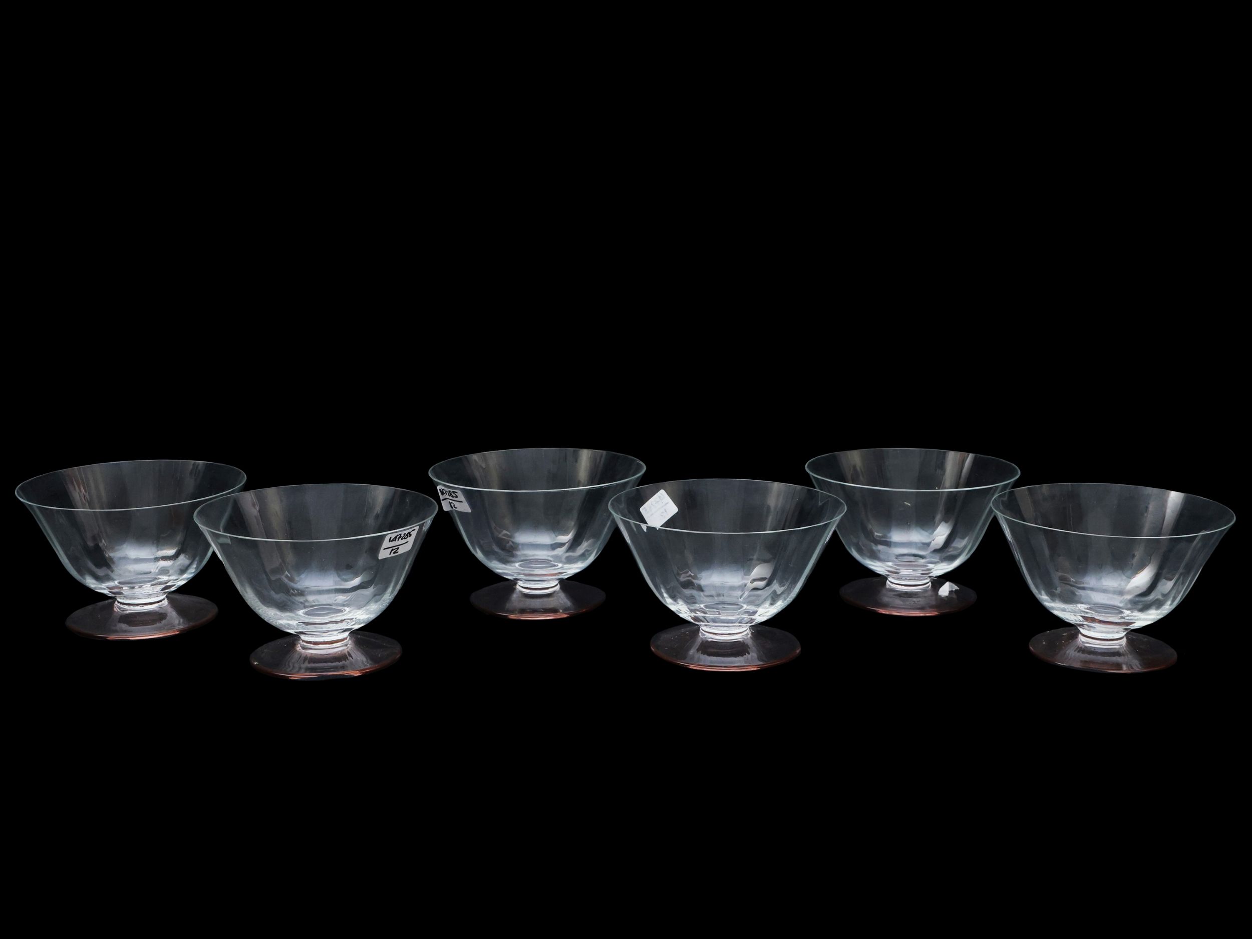 con una serie di dodici coppe da macedonia in vetro soffiato, piede rosa tenue, una serie di sei calici da vino in cristallo molato con stelo verde, una coppia di bottiglie da vino ed una miscellanea di posate Christofle, entro scatole (38)