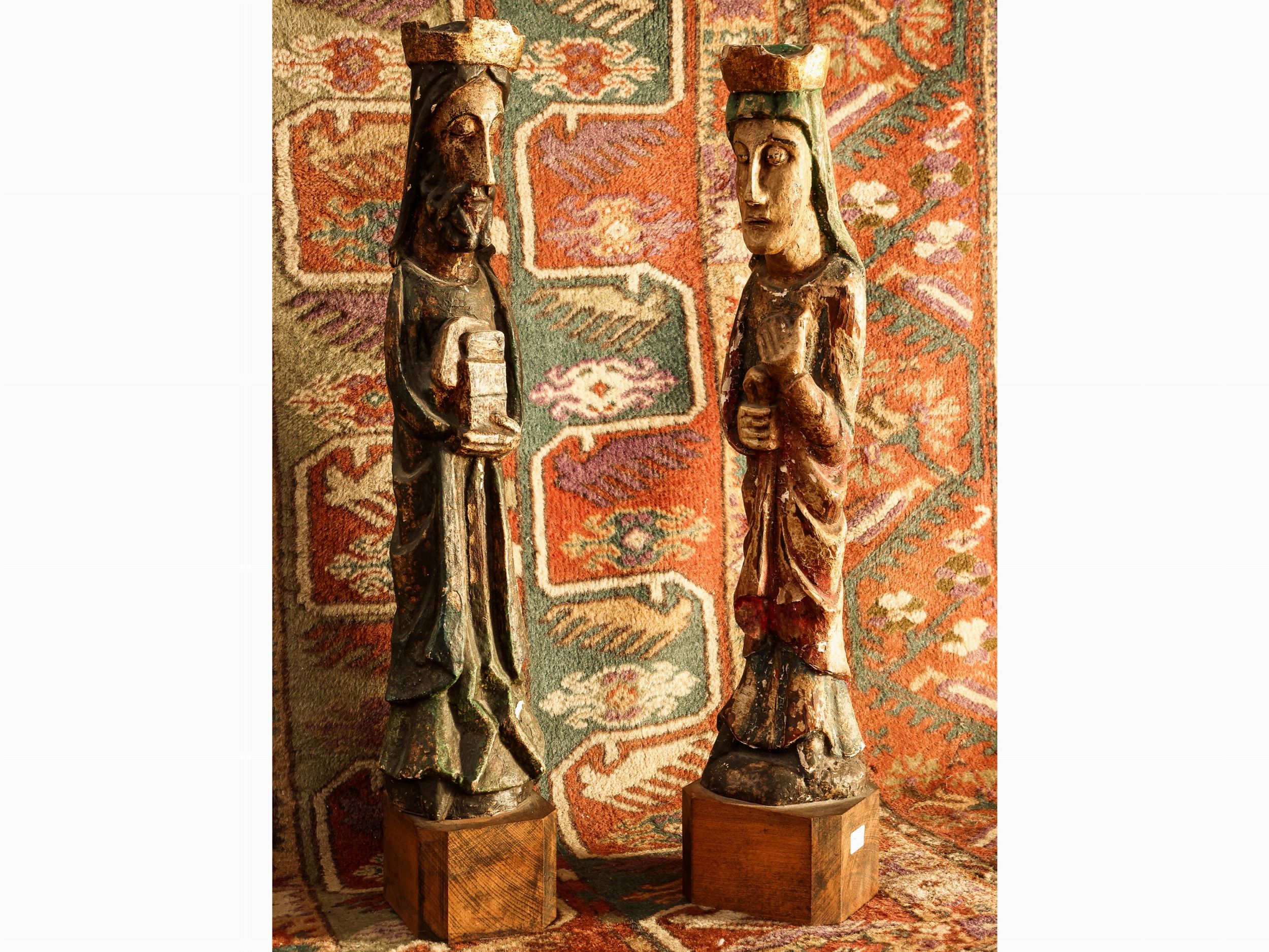 Coppia di figure lignee policrome