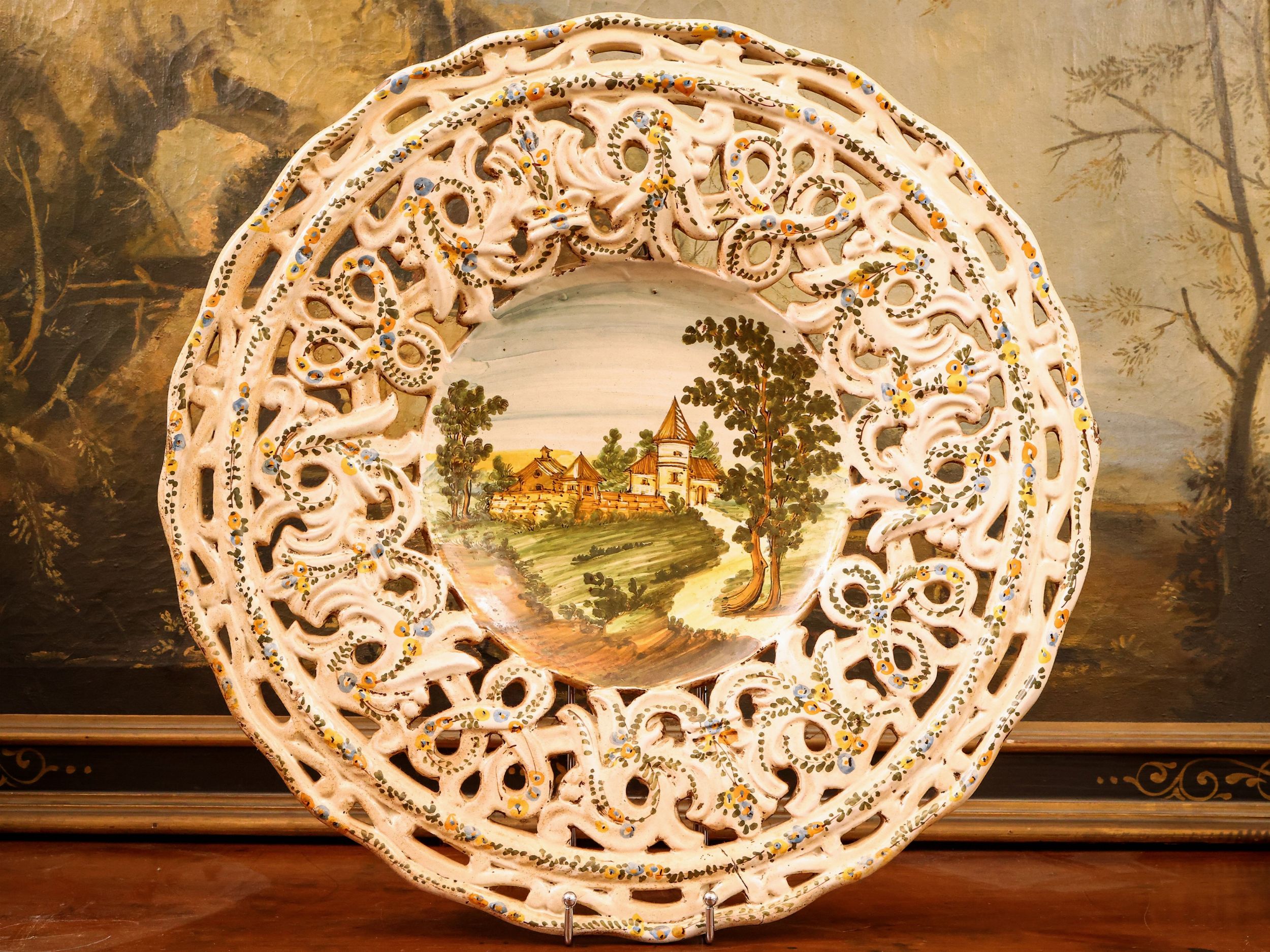 Coppia di piatti da parata in terraglia
