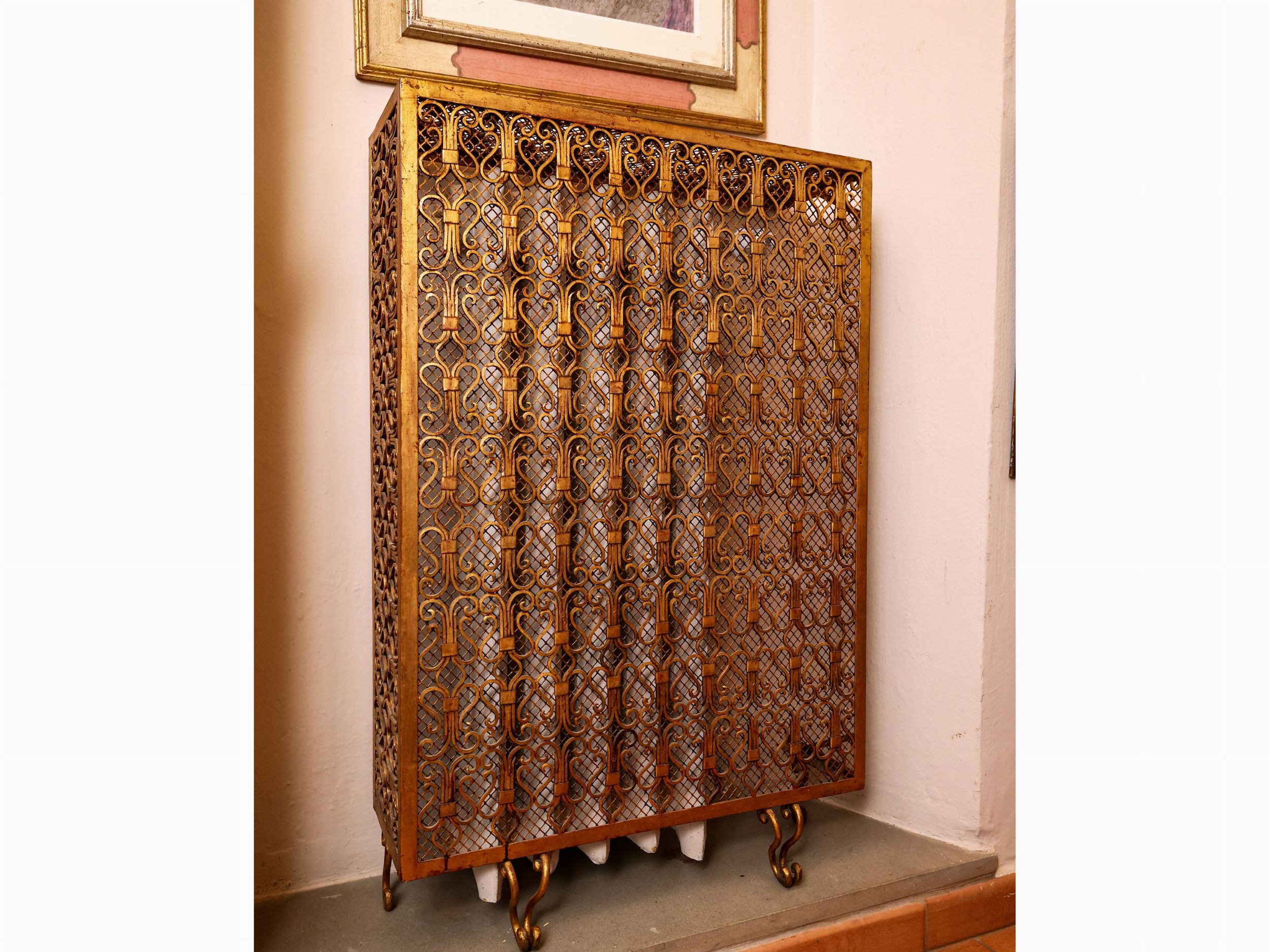 Copricalorifero in ferro battuto dorato