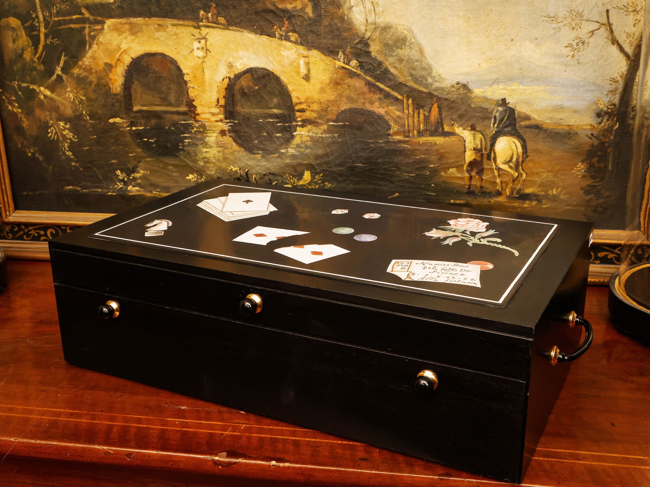 Grande cofanetto per collezioni in legno ebanizzato e scagliola