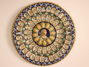 Piatto da parata in terracotta smaltata, Sberna Deruta
