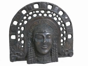 cm 58x62 inizio del XX secolo decorato a bassorilievo con volto di gusto Retour d'Egypte