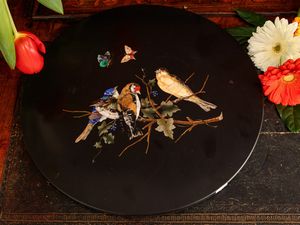 cm 75x91x52 inizio del XX secolo piano leggermente sagomato in parte rivestito in in stoffa spalmata, alzata [..]