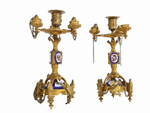 h cm 28 fine del XIX/inizio del XX secolo tre bracci portacandele ed uno centrale, impreziositi da placche in [..]