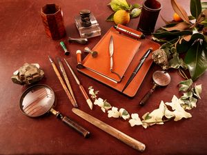 h cm 105x129x56,5 prima metà del XIX secolo un cassetto sotto il piano ed altri tre sottostanti intarsiati con [..]