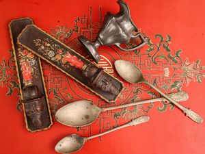cestini gr 145, h cm 18 Birmingham, 1926 realizzato come un'alzata polilobata che sorregge una coppia di cestini [..]