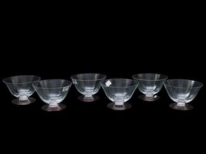 con una serie di dodici coppe da macedonia in vetro soffiato, piede rosa tenue, una serie di sei calici da vino [..]