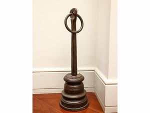 h cm 76,5x82x44 XVIII secolo poggiante su base in ferro, corredato di due chiavi