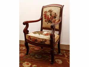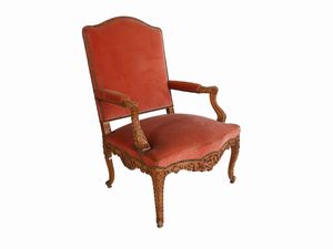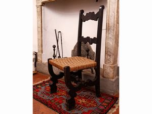 h cm 90 secona metà del XIX secolo schienale con cartelle orizzontali intagliate e traforate, gambe anteriori [..]