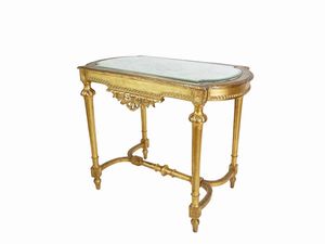 cm 78x80x50 inizio del XX secolo piano rettangolare con bordo intagliato con motivo di mezzi rosoni, quattro [..]