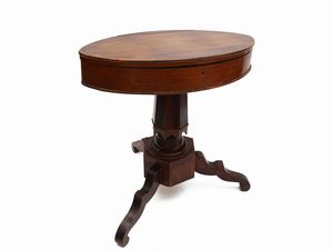 h cm 80x81x64 seconda metà XIX secolo piano ovale con cassettino nella fascia, sostegno centrale su tripode