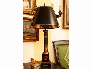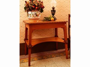 h cm 76,5x55x37 metà del XIX secolo un cassetto nella fascia, doppi sostegni torniti riuniti da traversa su piede [..]