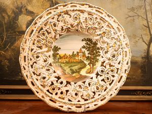 h cm 78x109x93, prolunghe lungh cm 54,5 inizio del XX secolo bordo intagliato con teoria di mezzi rosoni, fusto [..]