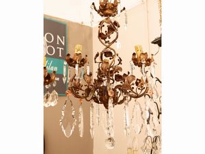 h cm 81x99x60 Francia, fine del XIX secolo piano rivestito in broccato e vetro molato (difetto), pendaglina intagliata [..]