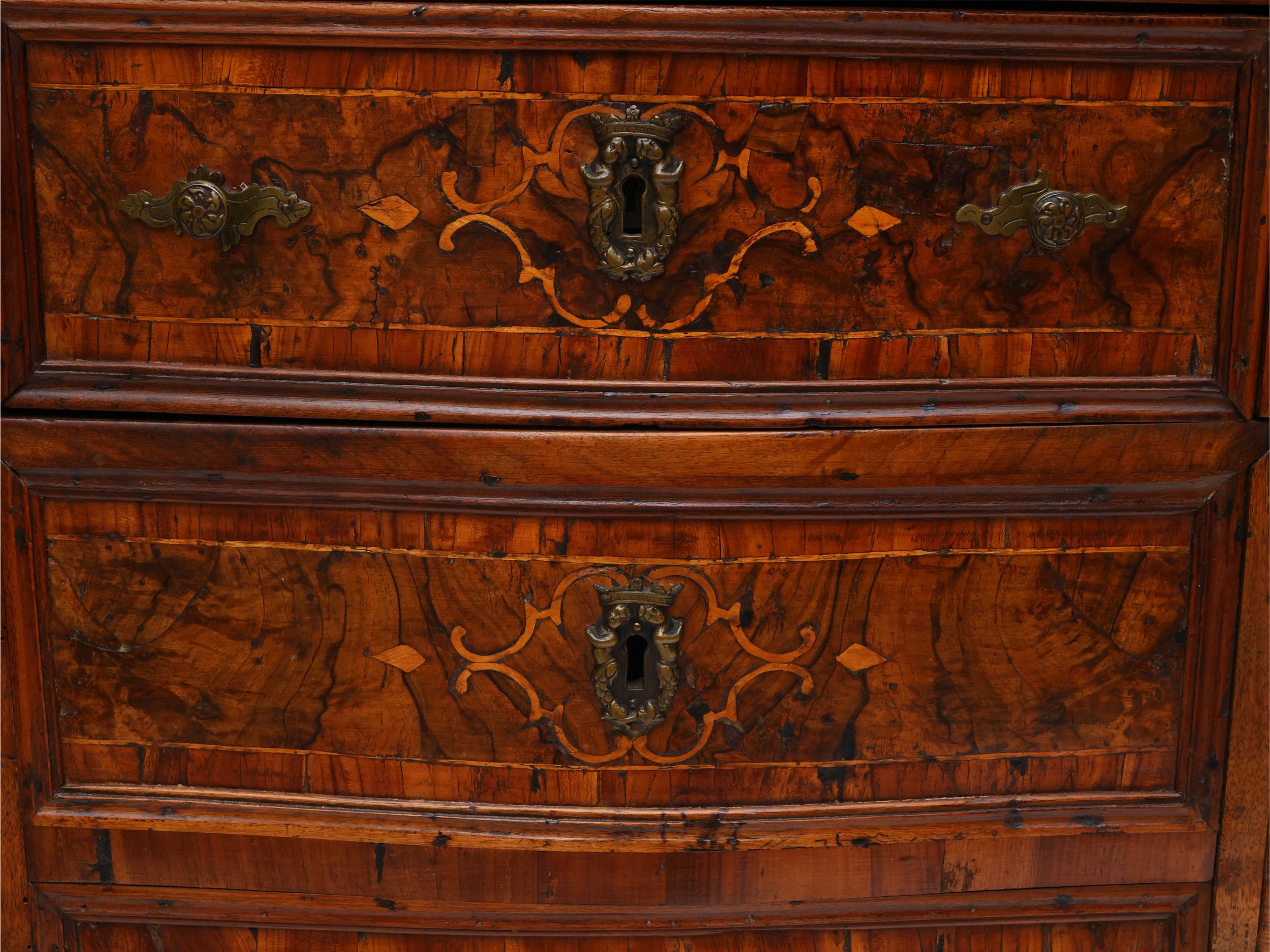 in parte del XVIII secolo realizzato come un piccolo cassettone, un cassettino ed uno sportello ad imitazione dei cassetti sul fronte leggermente mosso, piedi anteriori a nastro