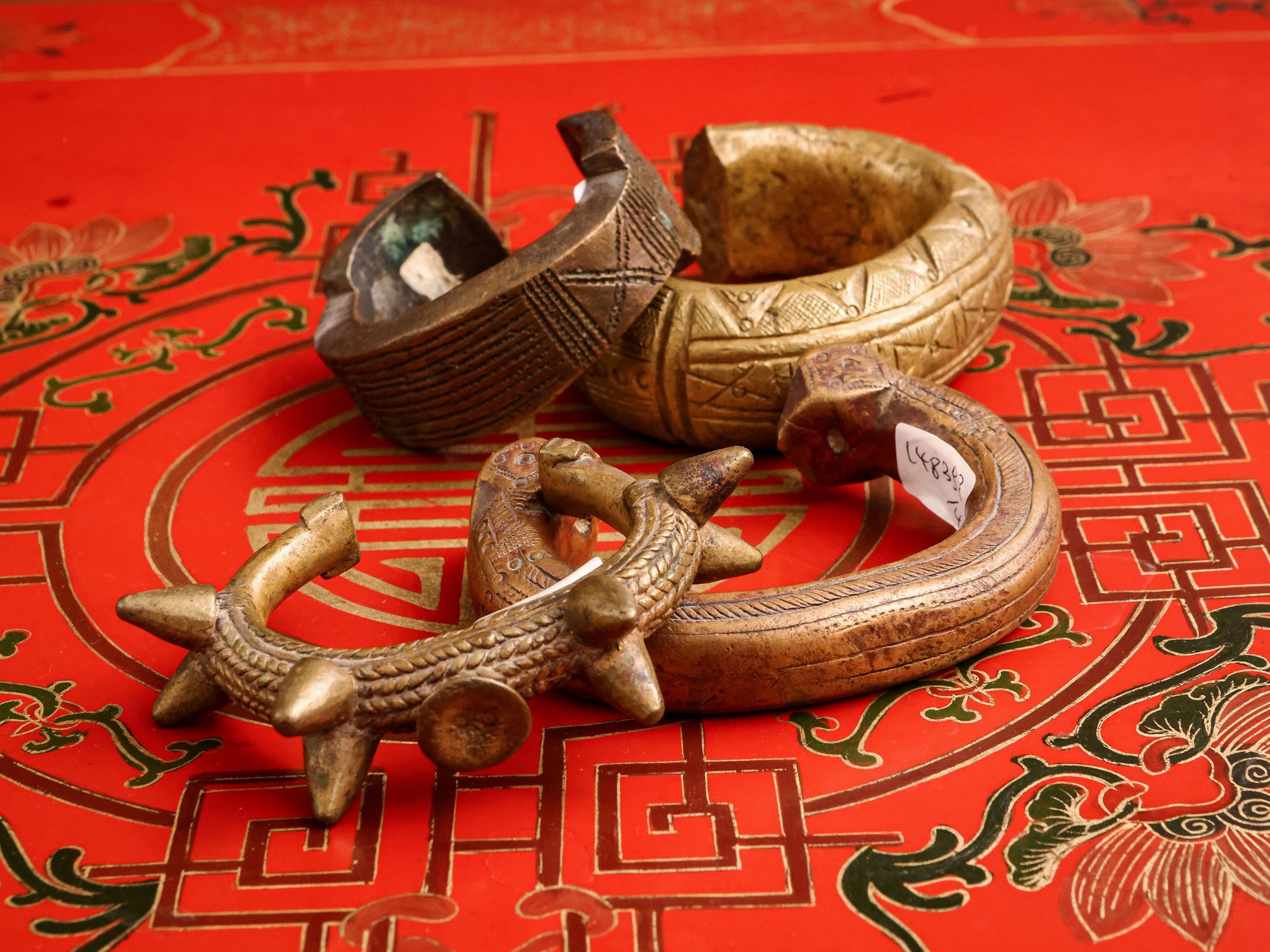 Quattro bracciali esotici in metallo, Africa