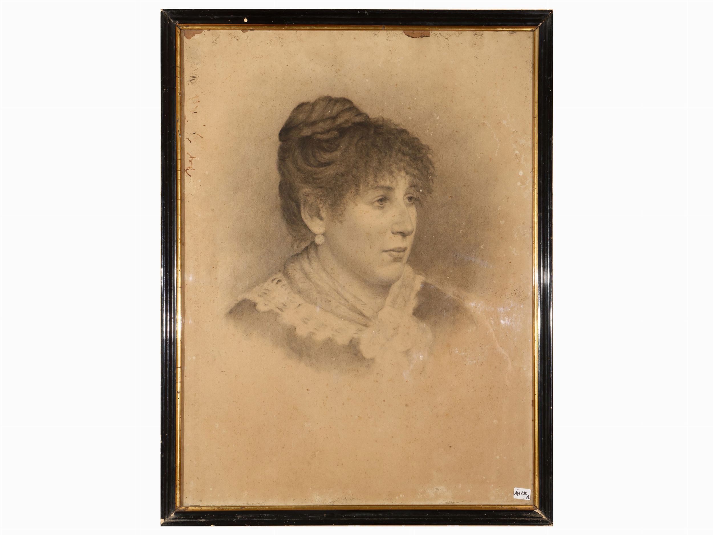 inizio XX secolo due disegni a matita su carta, in cornice, lievi difetti