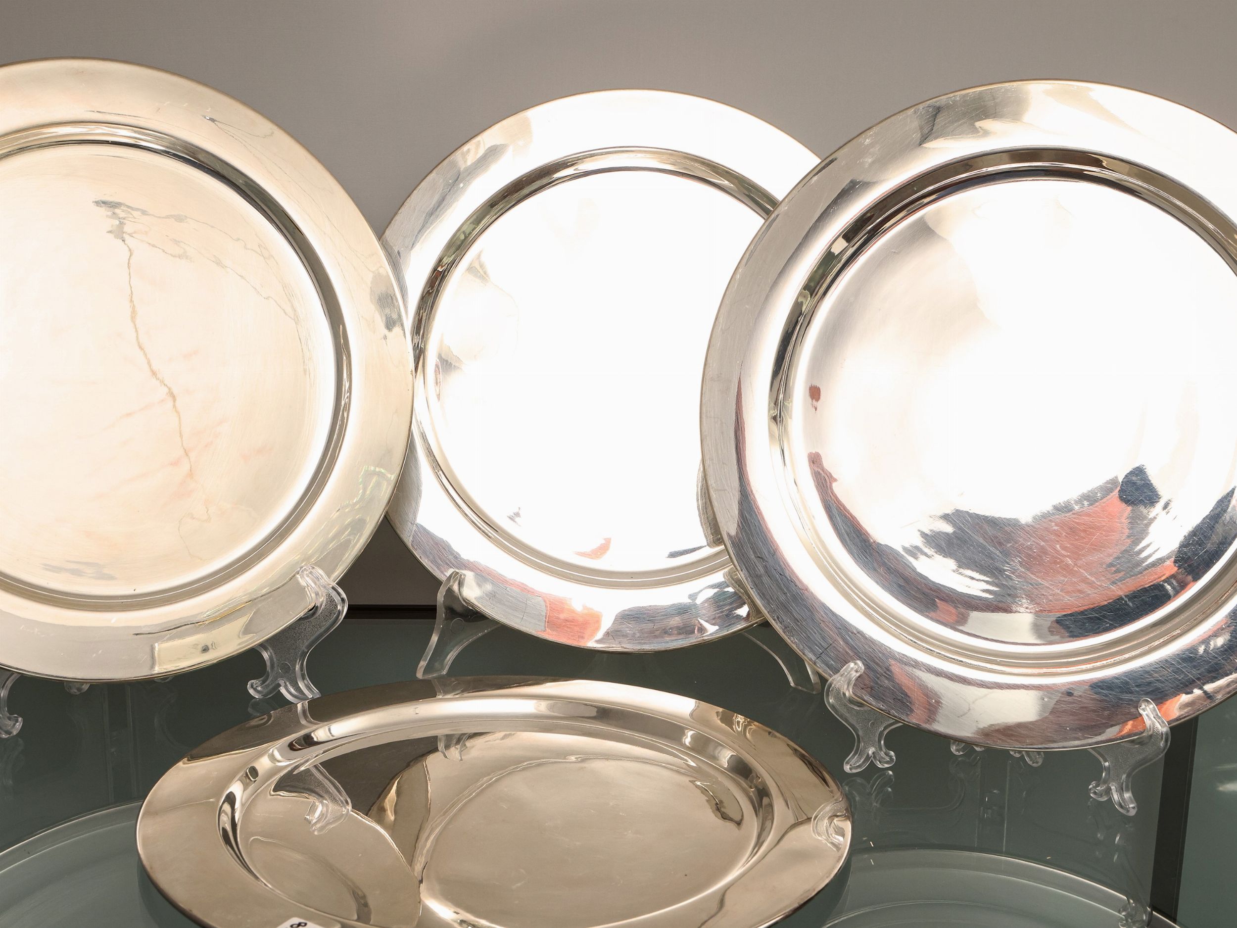 Serie di otto sottopiatti in metallo argentato