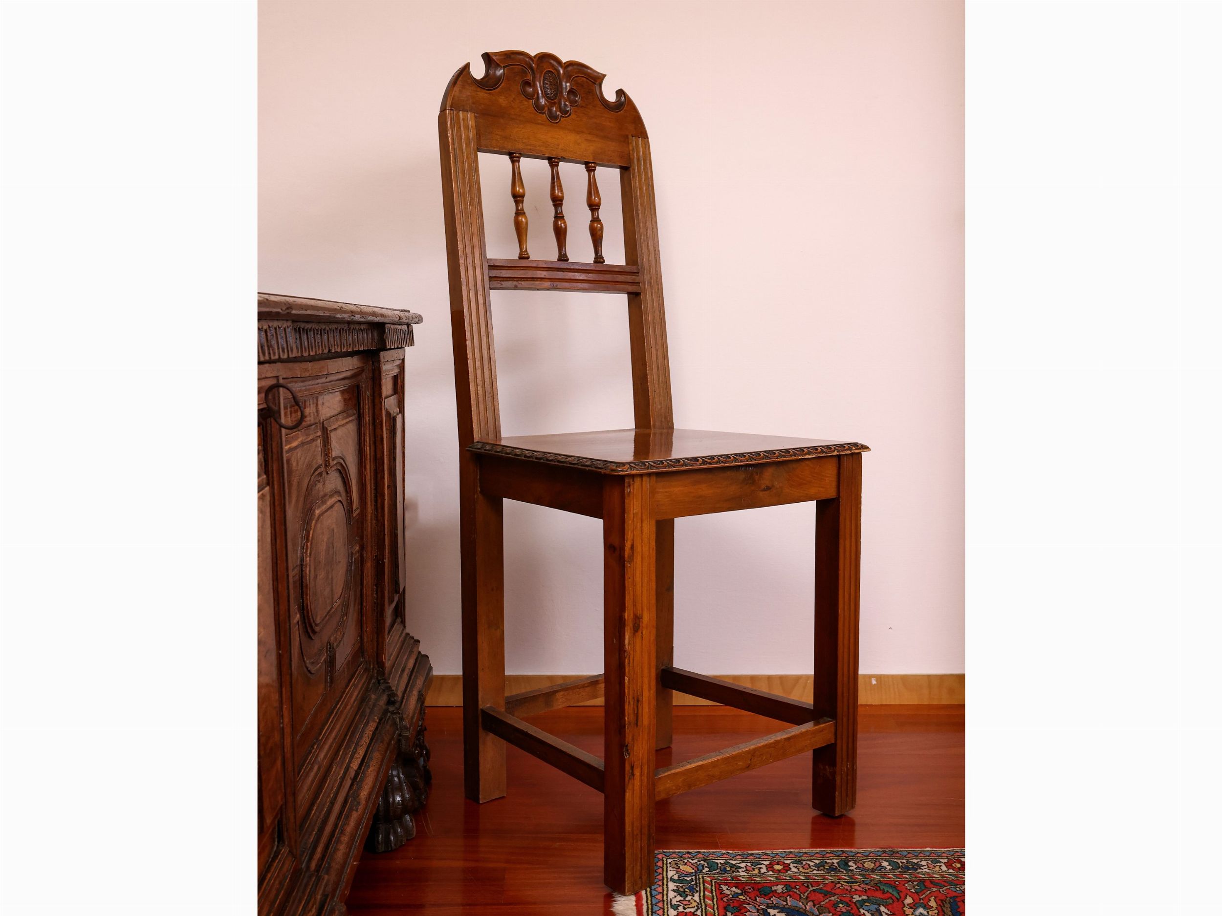 inizio del XX secolo spalliera sagomata centrata da cartiglio, traverse a cancello, gambe dritte riunite da traverse