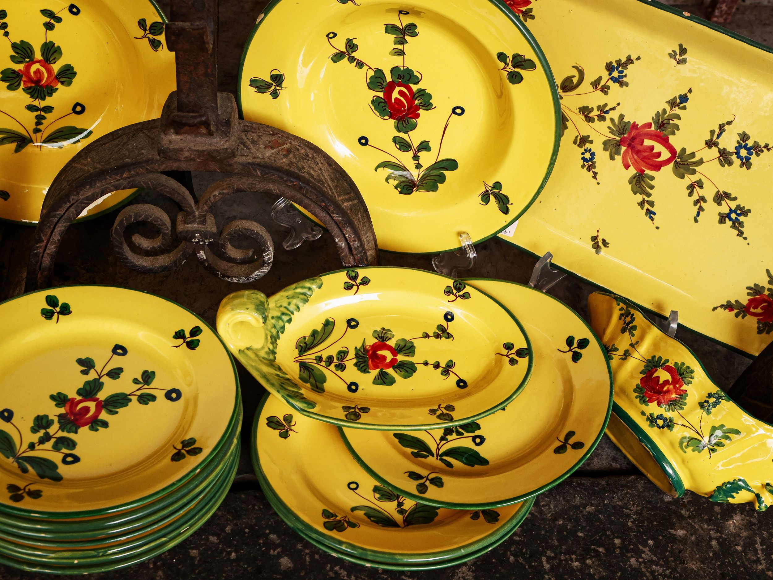 Servizio di piatti in trerracotta invetriata in giallo, Imola