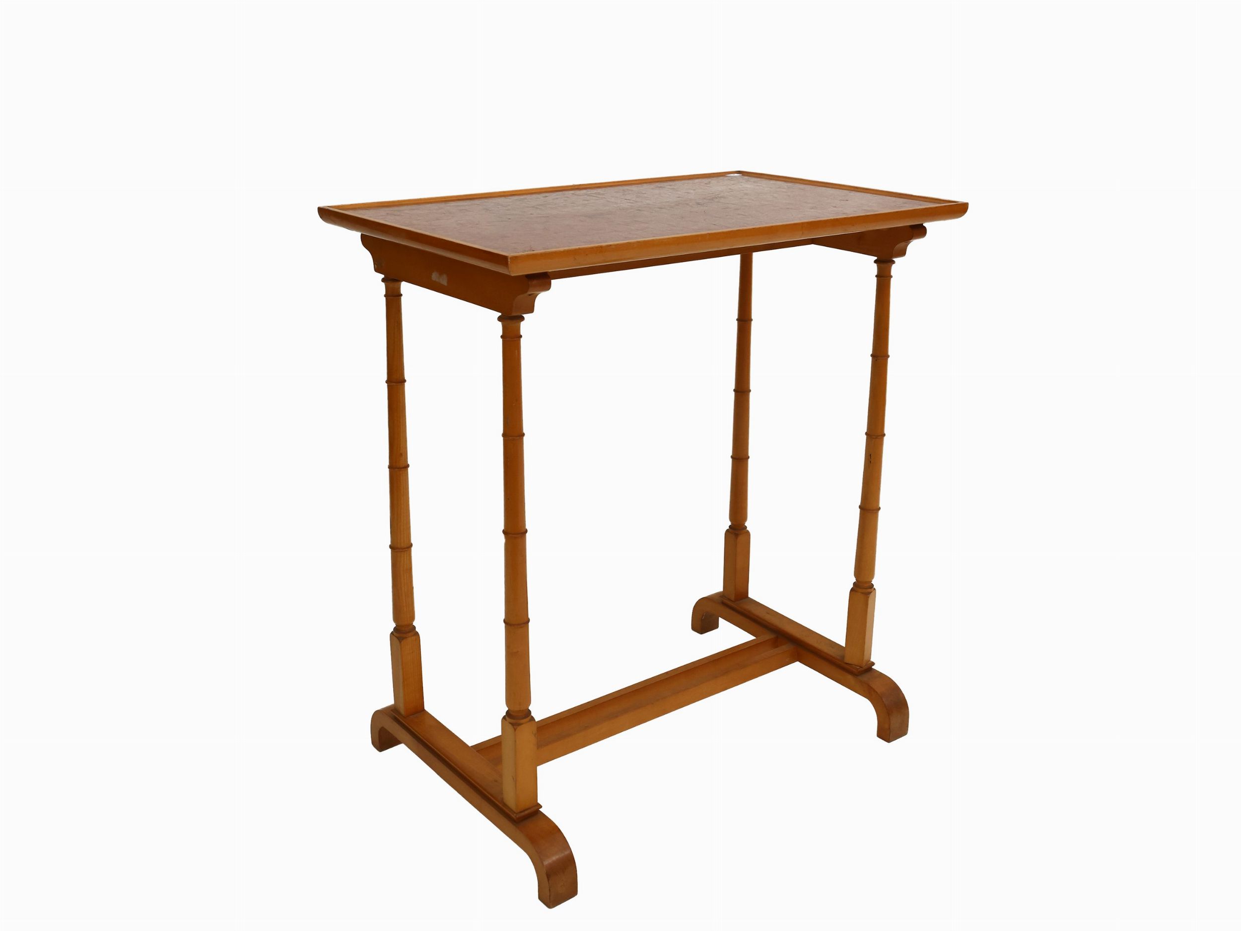 Tavolino da appoggio con piano impiallacciato in radica di tuia