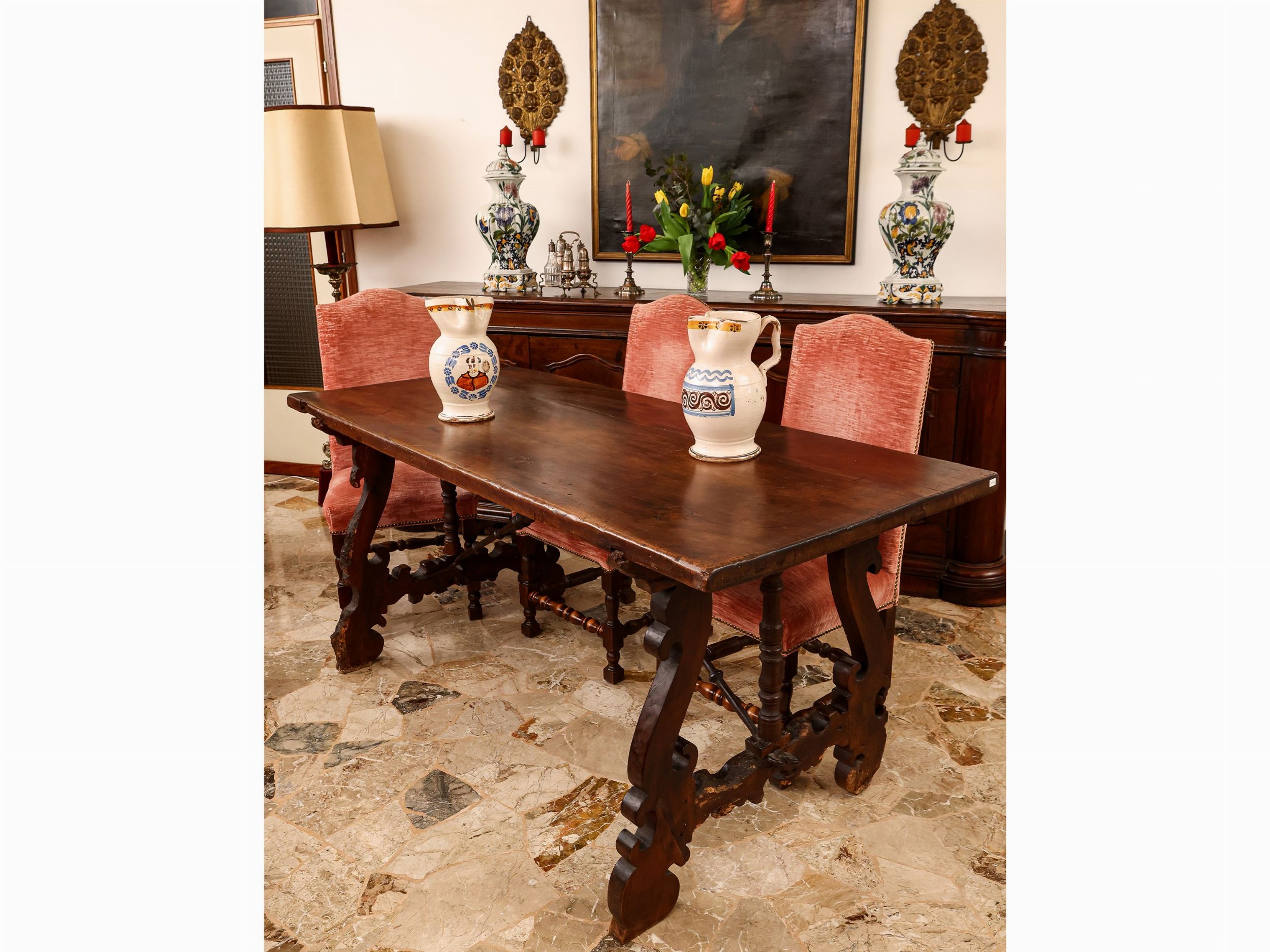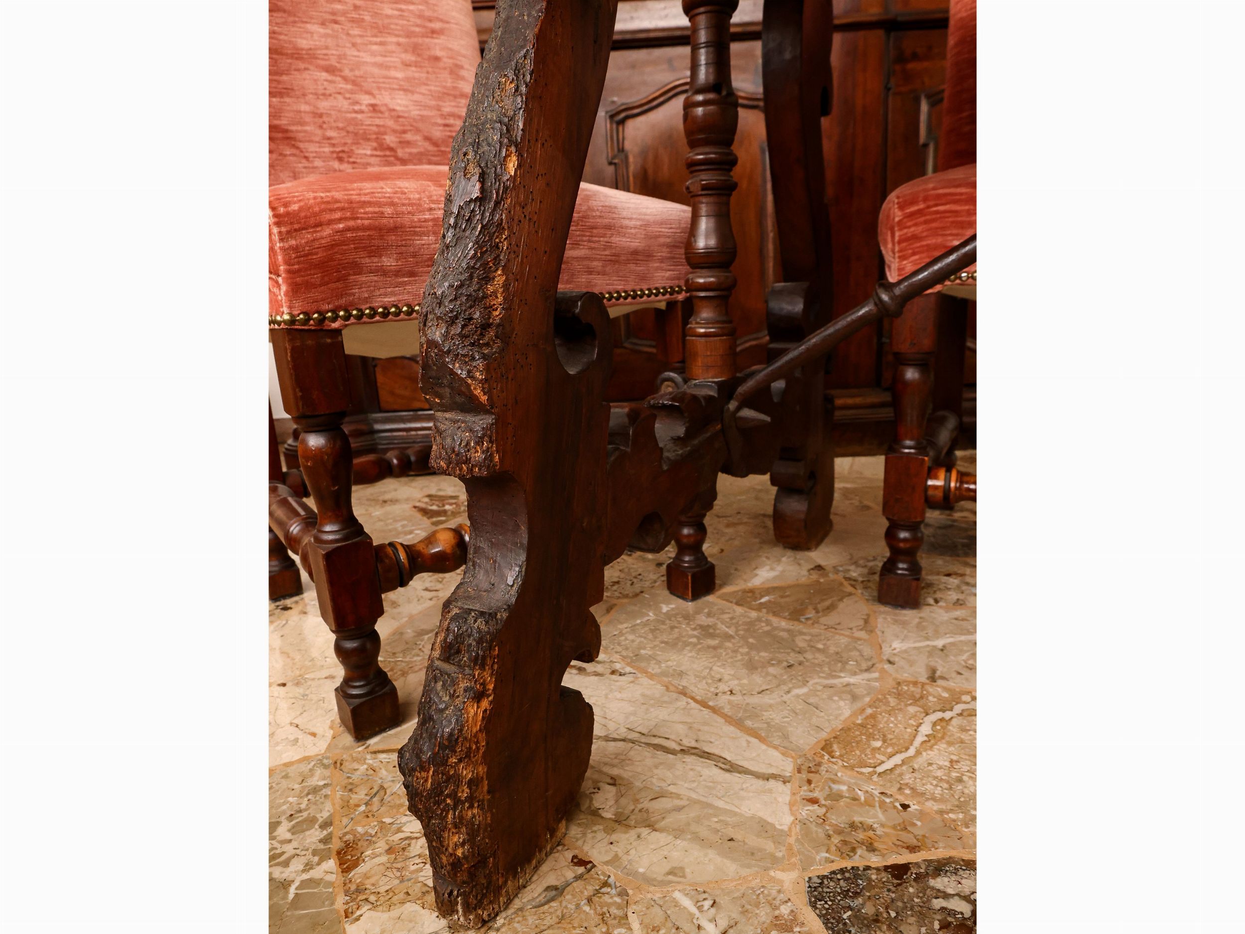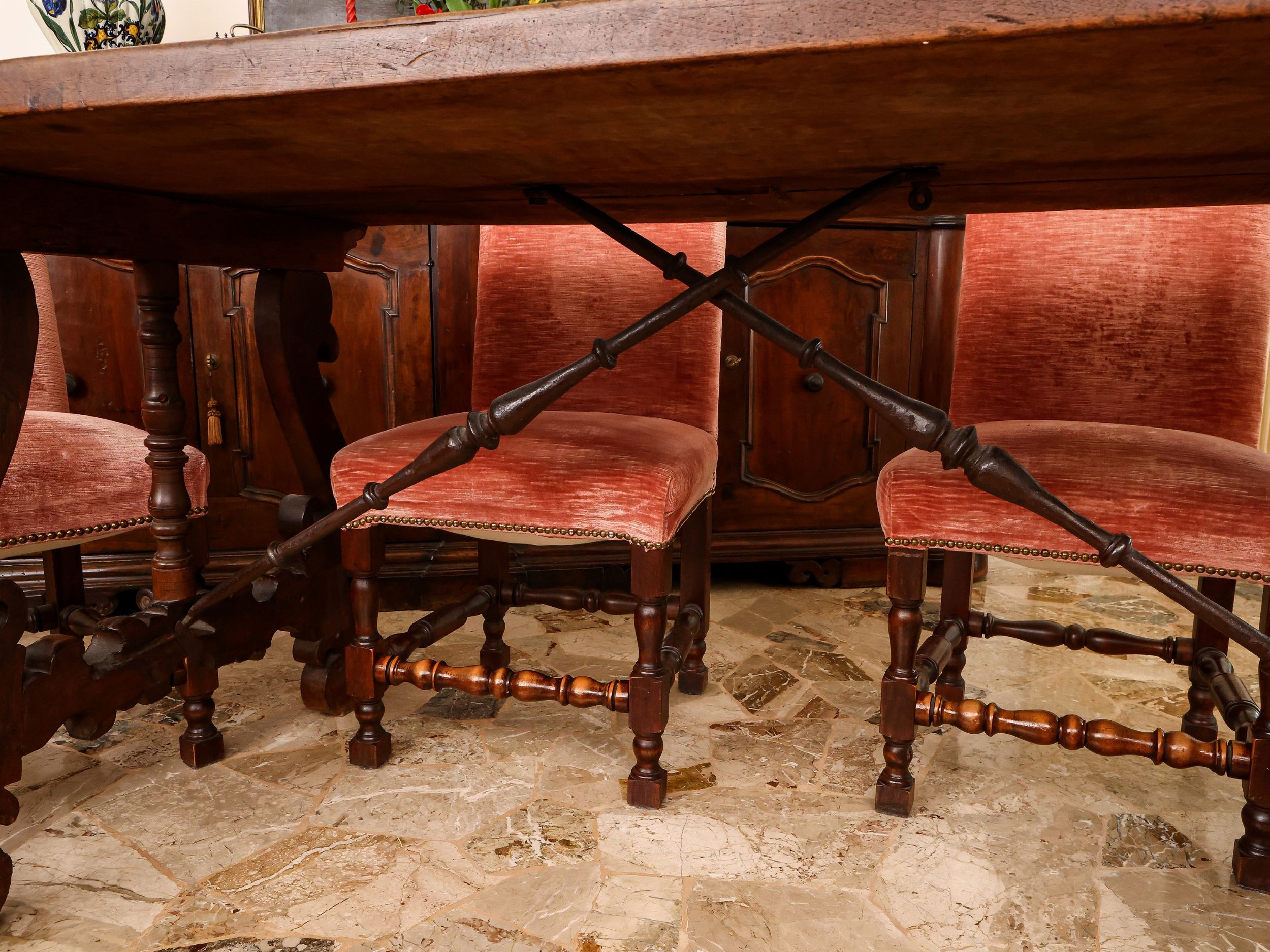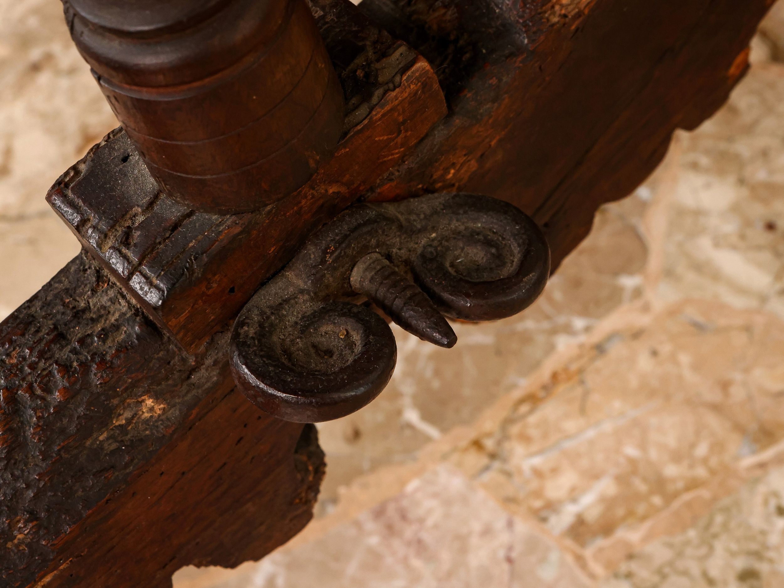 XVII secolo sostegni sagomati a lira riuniti da traverse tornite incrociate in ferro battuto, alcuni elementi di epoca posteriore. alcuni difetti