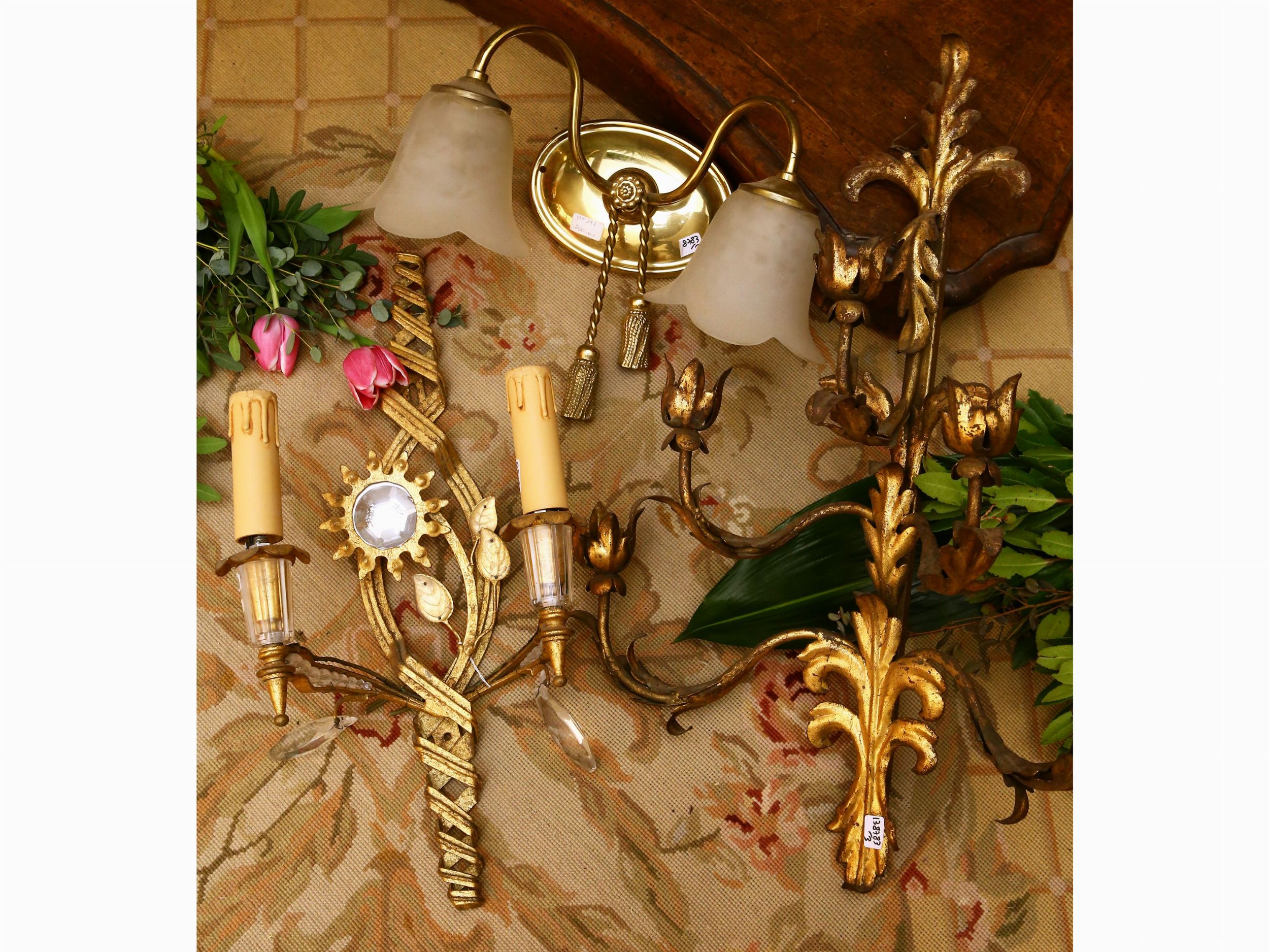 Tre applique in metallo dorato