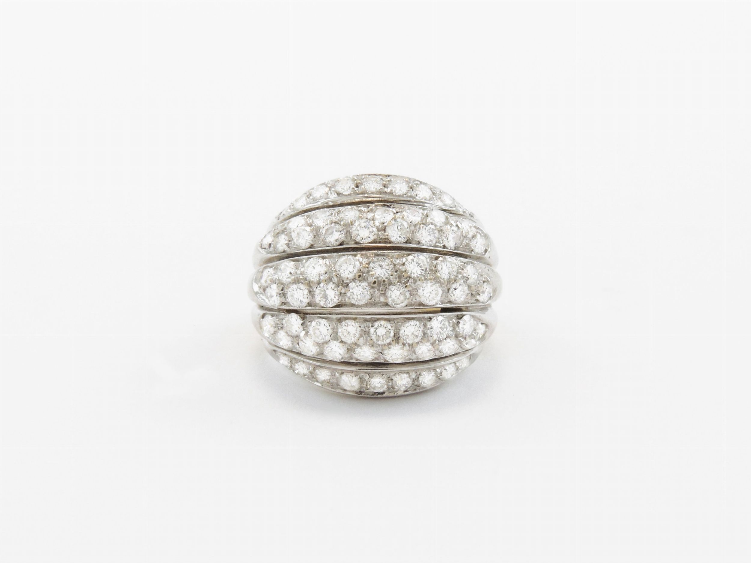 Anello a fascia bombata in oro bianco e giallo con diamanti