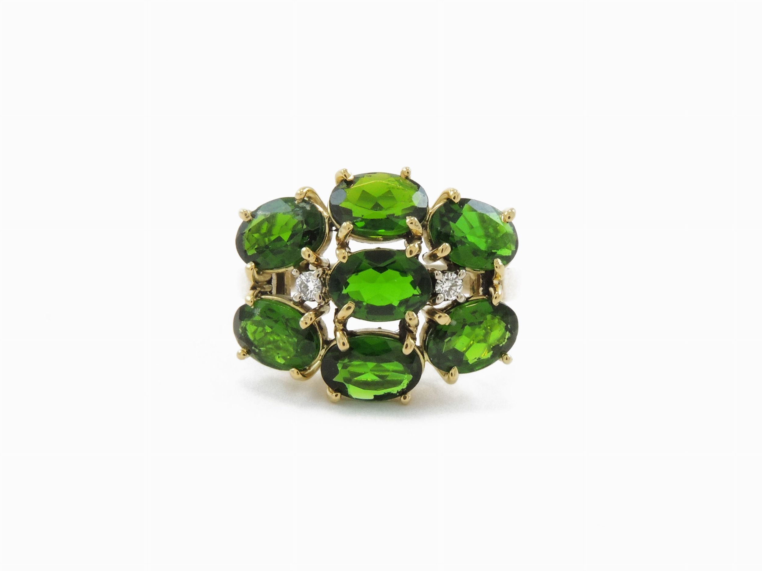 Anello in oro giallo con diopsidi e zirconie cubiche