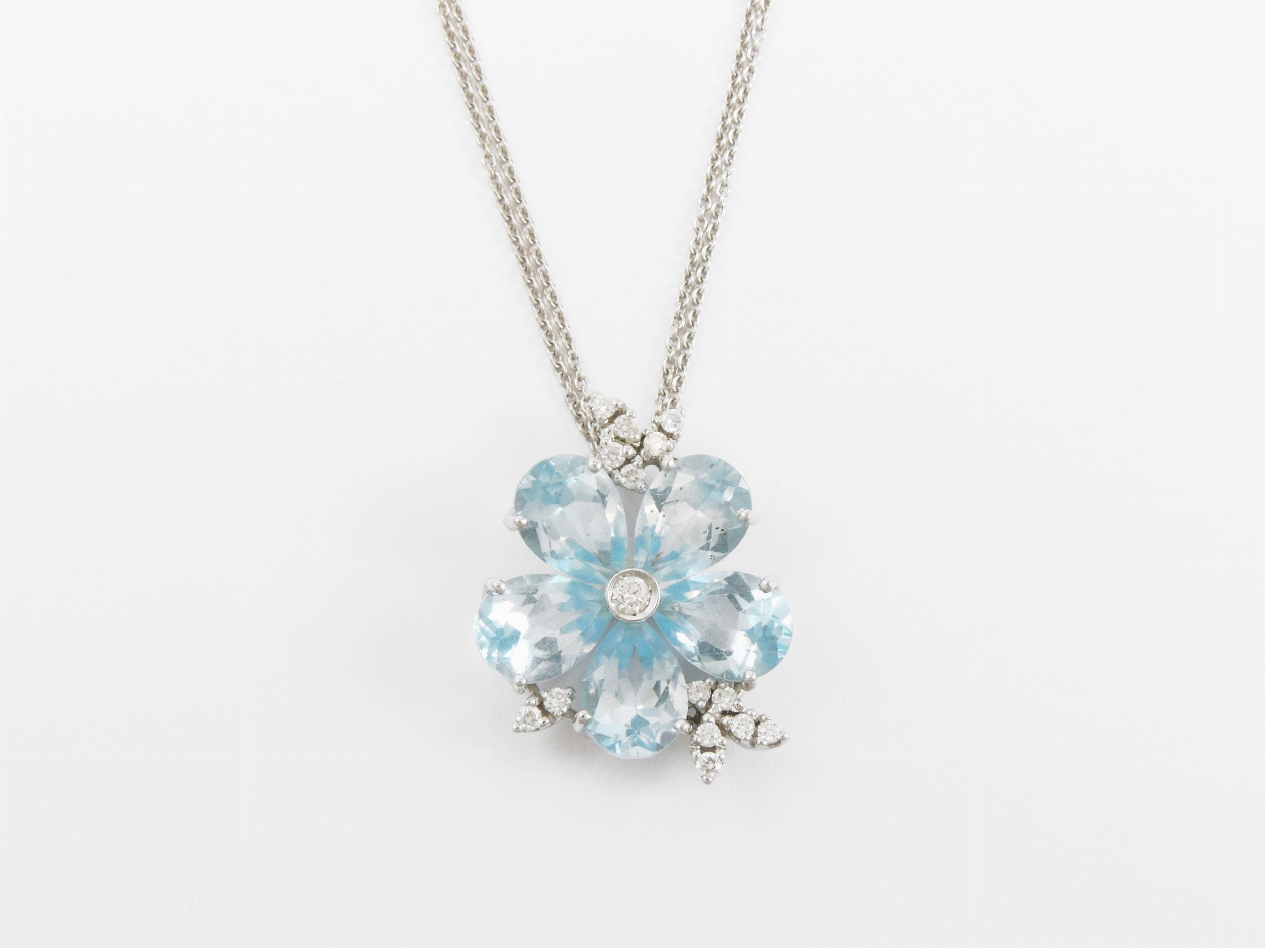 Catenina e pendente in oro bianco con diamanti e topazi azzurri