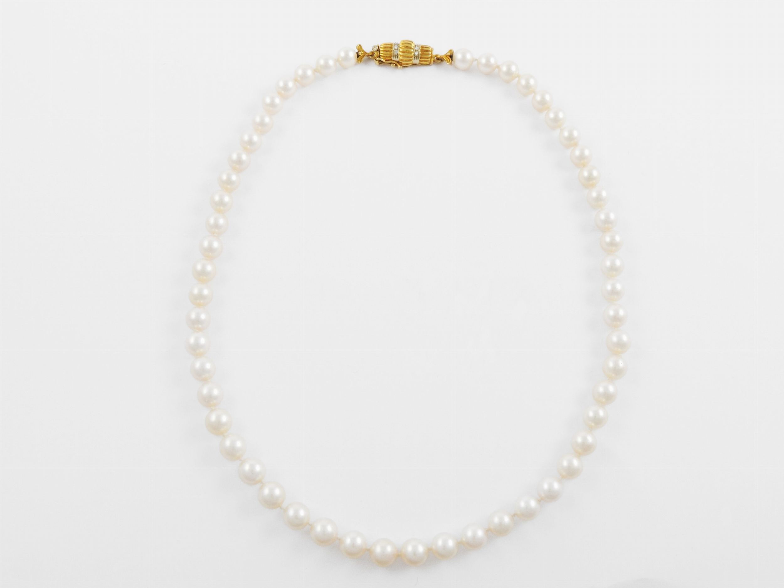 Collana di perle coltivate con fermezza in oro giallo e ebianco con diamanti