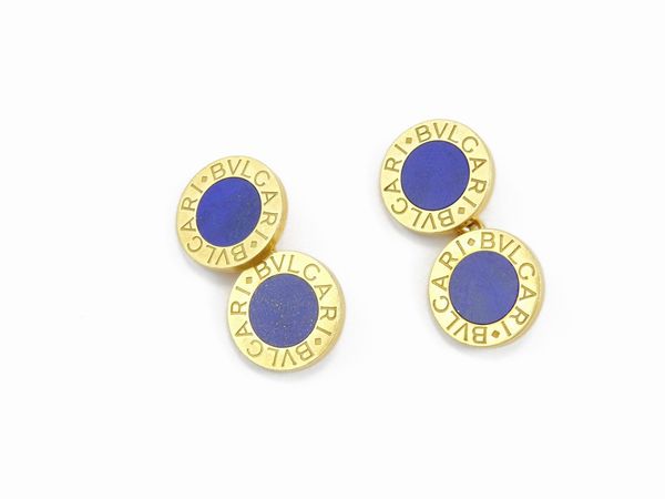 Coppia di gemelli Bulgari in oro giallo e lapislazzuli