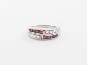 Anello in oro bianco con diamanti e rubini