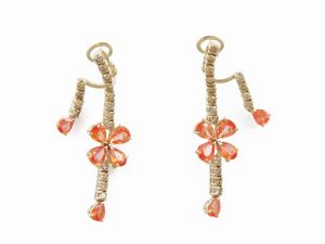 Orecchini pendenti in oro giallo con diamanti brown e zaffiri arancio