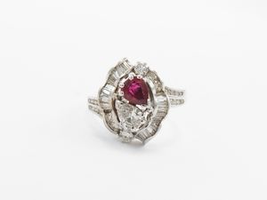 Anello in oro bianco con diamanti e rubino