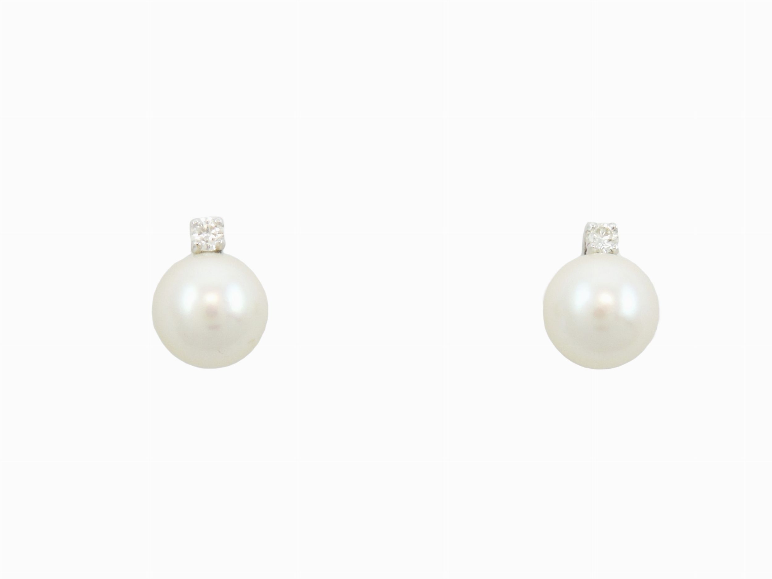 Orecchini in oro bianco con diamanti e perle coltivate Akoya