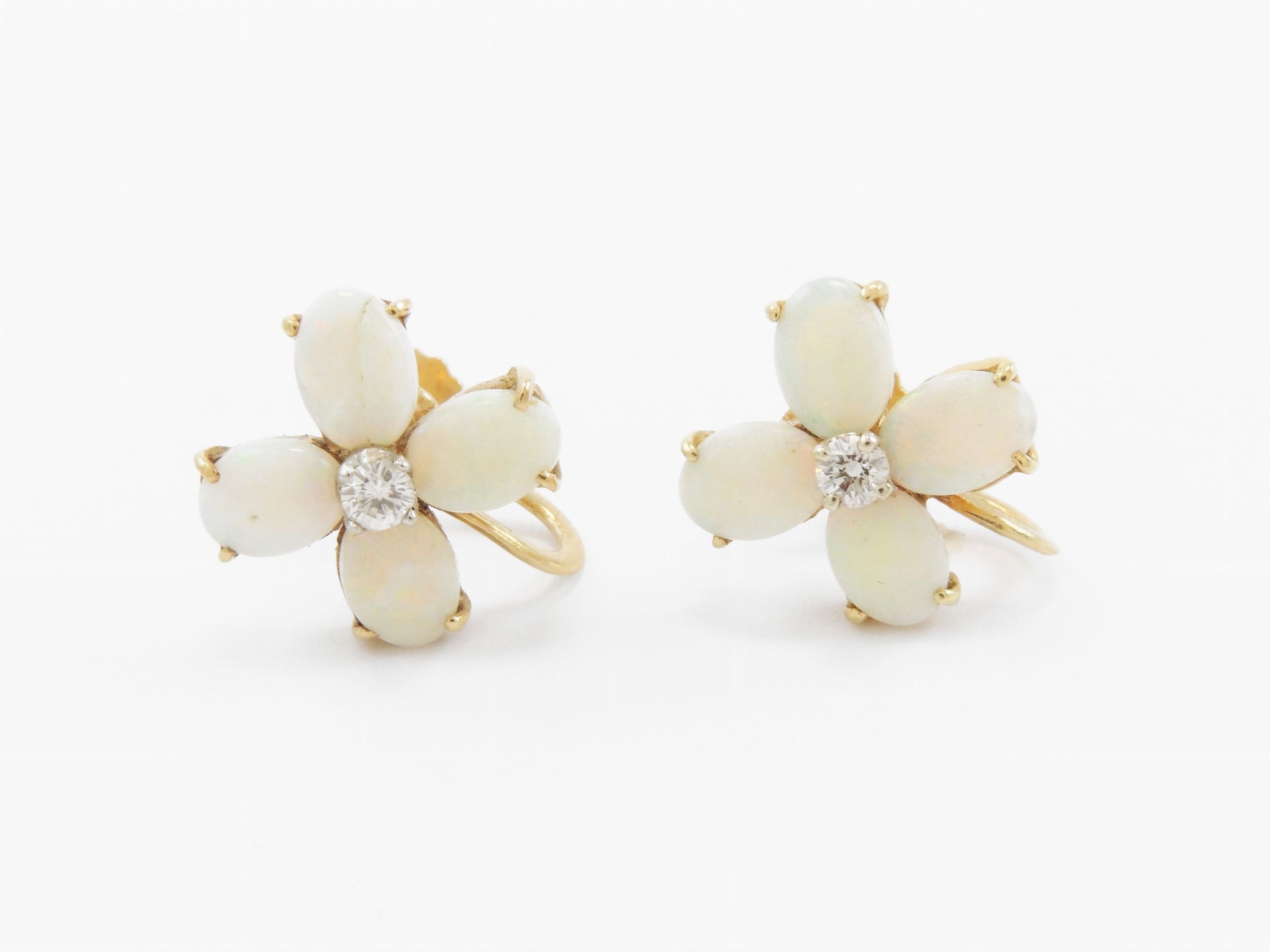Orecchini in oro giallo 585/1000 con diamanti e opali nobili bianchi