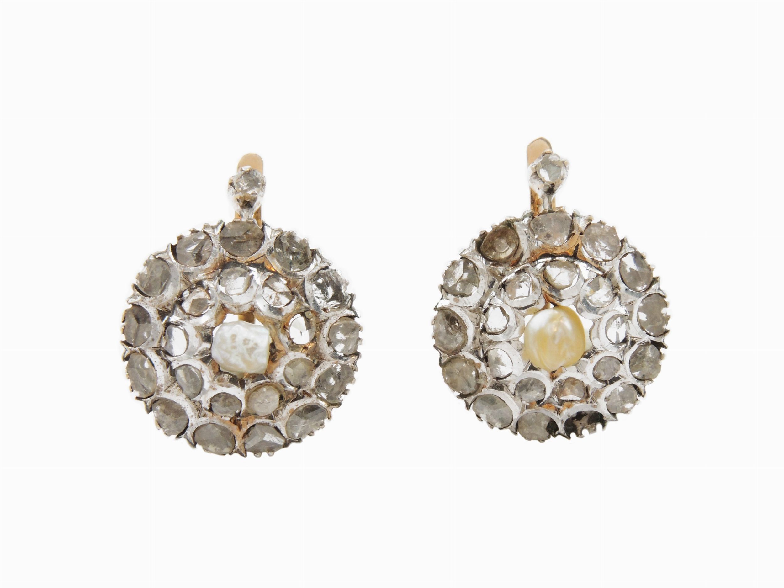 Orecchini in oro rosa a basso titolo con diamanti e perle barocche