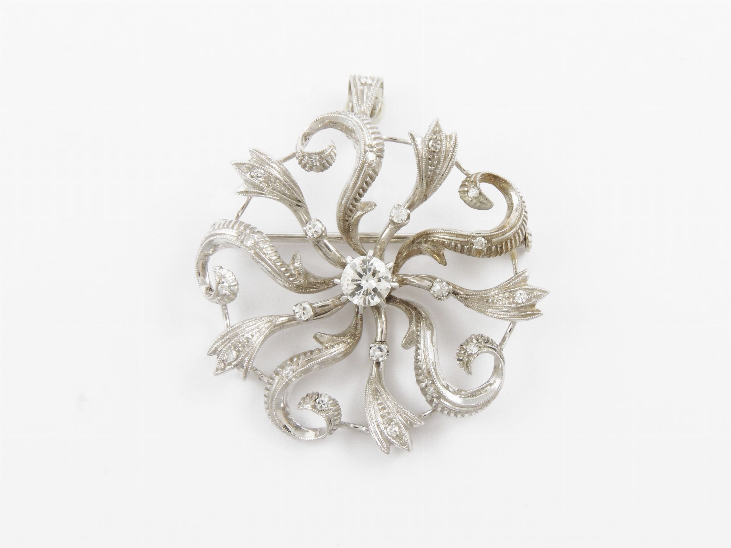 Pendente spilla in oro bianco con diamanti