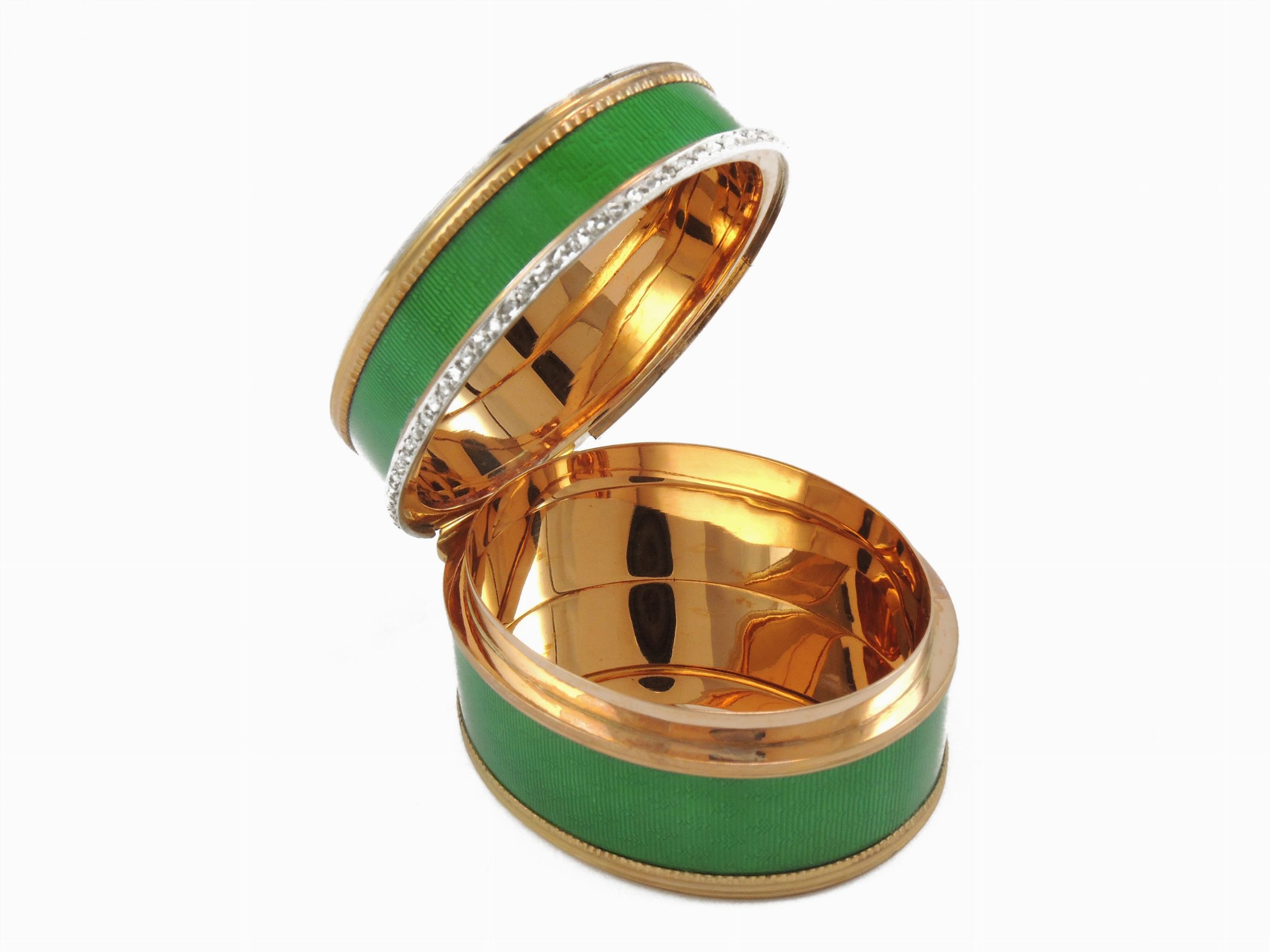 Tabacchiera in oro rosa e argento con diamanti e miniatura